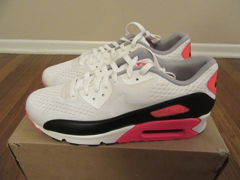 Nike Air Max 90 EM Men's Size: 11.5 Colorway: White/White-Black-Infrared Stylecode: 554719 110 Condition: New In Box 2013 Release About: PRESTO WORLDWIDE (ebay user ID: presto2005) Over 20 Years on eBay & Over 10,000 Successful Transactions! - Presto2005 only sells 100% authentic merchandise. - All items are purchased from 100% authorized retailers or the manufacturers directly (All Supreme items are purchased directly from Supreme on their online store or in one of their few retail stores -Additional items not listed or pictured such as receipts, bags or stickers are not included! Presto2005 has completed tens of thousands of successful transactions. You can purchase with confidence as we take pride in our business. Check out our Feedback if you have any reservations. Presto2005 has been collecting, buying and selling 100% authentic fashion, footwear, streetwear, collectibles, memorabilia and more since the early 1990’s. Please be sure to regularly visit our store as new items are frequently added to our inventory of over 1,000 items. SHIPPING POLICY: - All orders will be shipped out within 2 business days of the purchase (usually sooner) - We only ship to the address provided by eBay. No Exceptions! - We take extra measures to package your item securely and neatly to protect your merchandise. - You can track your package online with the tracking number provided to you through eBay that will upload automatically once we process it. - Please be sure your shipping address is up to date and accurate. INTERNATIONAL BUYERS: - We only ship overseas through eBays INTERNATIONAL SHIPPING PROGRAM. If you are not a part of this program or your country is not eligible you will not be able to complete the transaction. - We do not ship directly overseas. All items would ship through the ebay International Shipping Program *** Additional shipping charges through this program are regulated by eBay. These fees are not something we can change or negotiate. *** PAYMENT: - Approved eBay payment methods only! Please check out the other items in our store: https://www.ebay.com/str/PRESTO-WORLDWIDE?_trksid=p2047675.l2563 Don't forget to email us any questions you may have - we are more than happy to help! Thank you again for shopping with Presto2005!