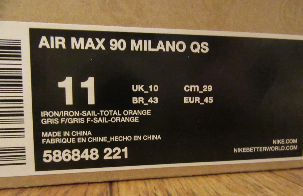 Nike Air Max 90 Milano QS Men's Size: 11 Colorway: Iron/Iron-Sail-Total Orange Stylecode: 586848 221 Condition: New In Box 2013 Release About: PRESTO WORLDWIDE (ebay user ID: presto2005) Over 20 Years on eBay & Over 10,000 Successful Transactions! - Presto2005 only sells 100% authentic merchandise. - All items are purchased from 100% authorized retailers or the manufacturers directly (All Supreme items are purchased directly from Supreme on their online store or in one of their few retail stores -Additional items not listed or pictured such as receipts, bags or stickers are not included! Presto2005 has completed tens of thousands of successful transactions. You can purchase with confidence as we take pride in our business. Check out our Feedback if you have any reservations. Presto2005 has been collecting, buying and selling 100% authentic fashion, footwear, streetwear, collectibles, memorabilia and more since the early 1990’s. Please be sure to regularly visit our store as new items are frequently added to our inventory of over 1,000 items. SHIPPING POLICY: - All orders will be shipped out within 2 business days of the purchase (usually sooner) - We only ship to the address provided by eBay. No Exceptions! - We take extra measures to package your item securely and neatly to protect your merchandise. - You can track your package online with the tracking number provided to you through eBay that will upload automatically once we process it. - Please be sure your shipping address is up to date and accurate. INTERNATIONAL BUYERS: - We only ship overseas through eBays INTERNATIONAL SHIPPING PROGRAM. If you are not a part of this program or your country is not eligible you will not be able to complete the transaction. - We do not ship directly overseas. All items would ship through the ebay International Shipping Program *** Additional shipping charges through this program are regulated by eBay. These fees are not something we can change or negotiate. *** PAYMENT: - Approved eBay payment methods only! Please check out the other items in our store: https://www.ebay.com/str/PRESTO-WORLDWIDE?_trksid=p2047675.l2563 Don't forget to email us any questions you may have - we are more than happy to help! Thank you again for shopping with Presto2005!