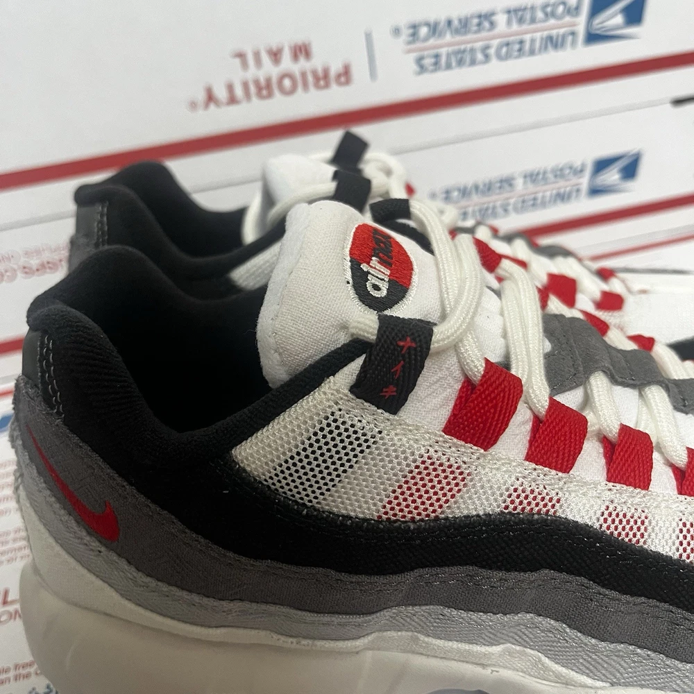 The Nike Air Max 95 QS Japan Plum Blossom in men's size 6.5 and women's size 8 is a stylish and versatile sneaker perfect for various occasions. With a low top design, lace-up closure, and a white color scheme, these athletic shoes are suitable for activewear, casual outings, and even workwear. Made with mesh upper material, they offer breathability and comfort, making them ideal for year-round wear in all seasons. Featuring Nike's renowned Air Max technology, these sneakers provide cushioning and support for activities such as gym training, walking, and running.