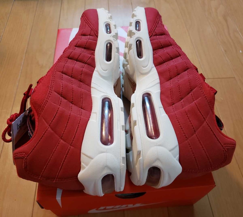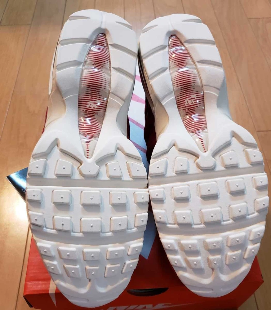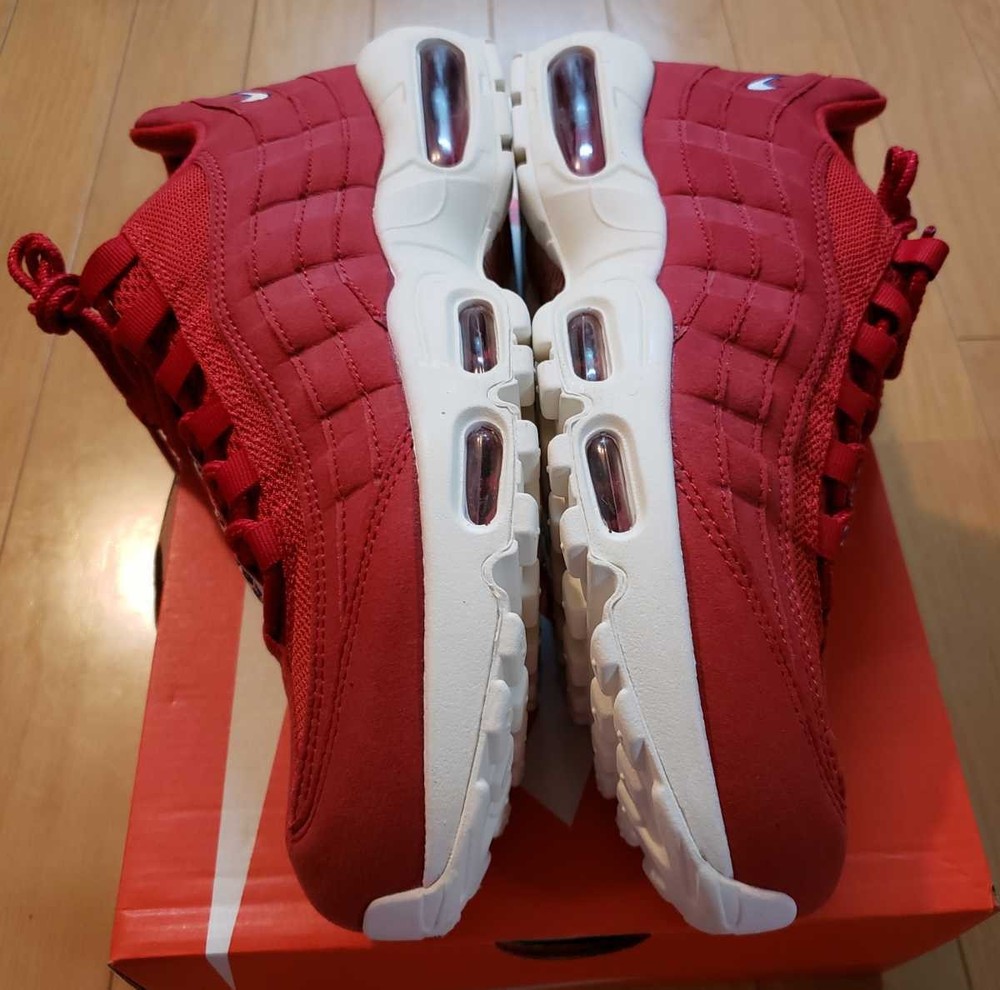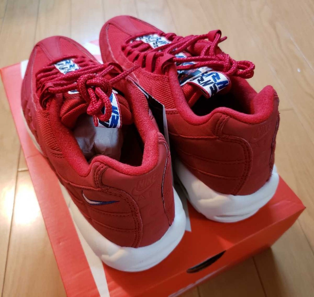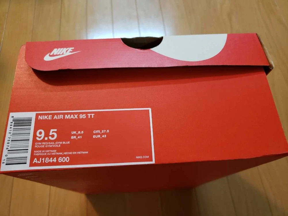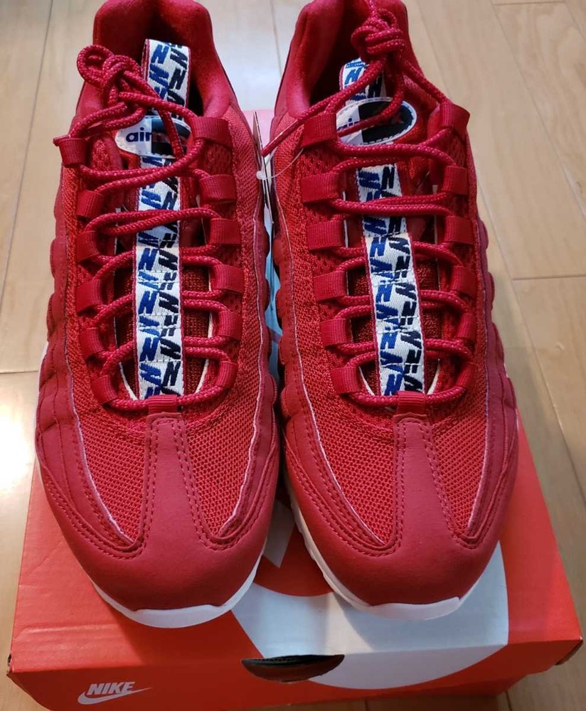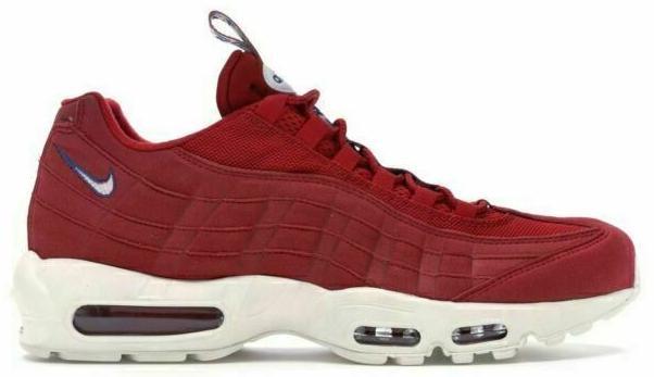 Brand:NikeFull Model:Nike Air Max 95 TT Pull TabRelease Date:20180402Model:Nike Air Max 95Style Code:AJ1844-600Manufacturer Color:Gym Red/Gym Blue-SailColor:RedProduct Line:Nike Air MaxNickname:Gym RedDepartment:MenType:AthleticStyle:SneakerUS Shoe Size:9.5Release Year:2018