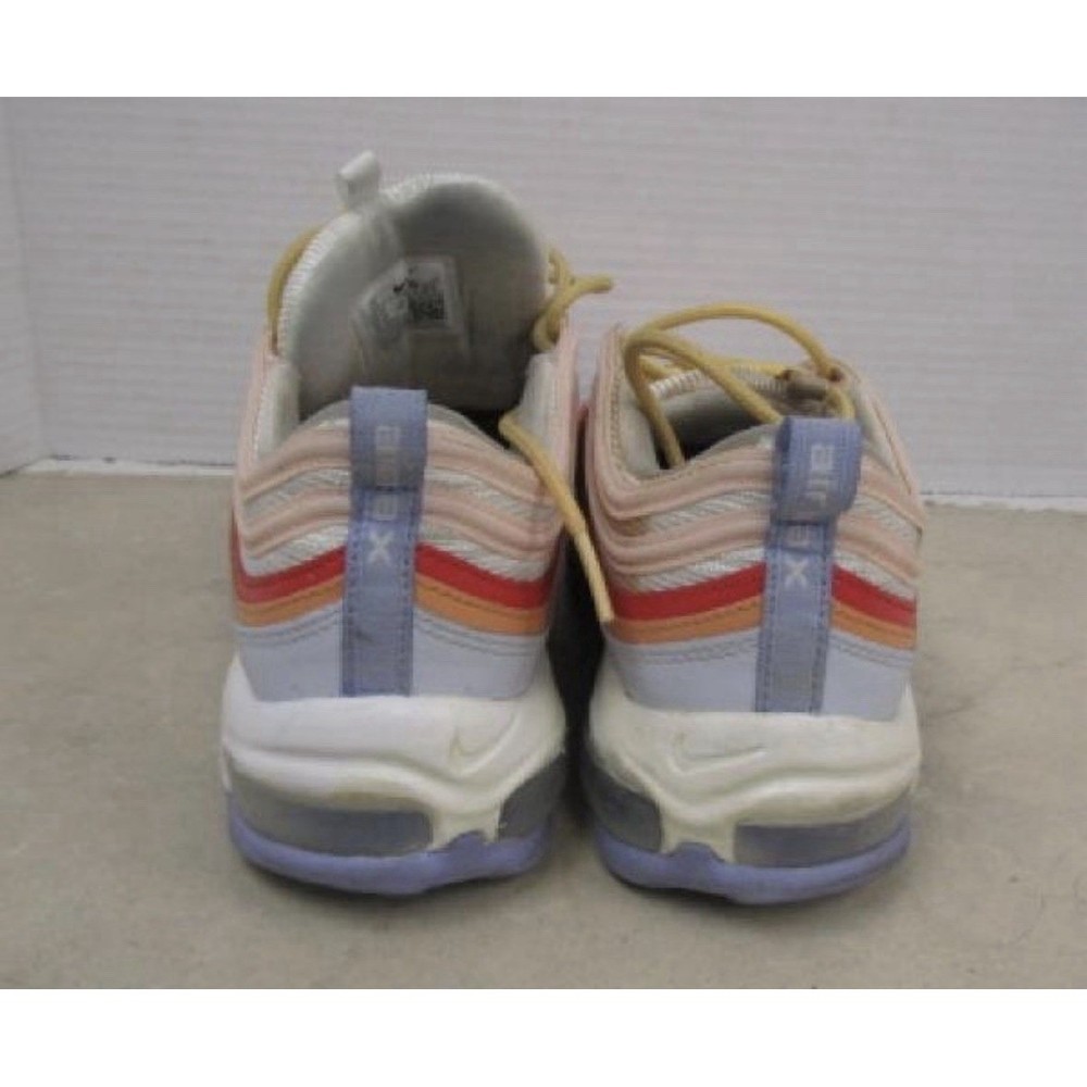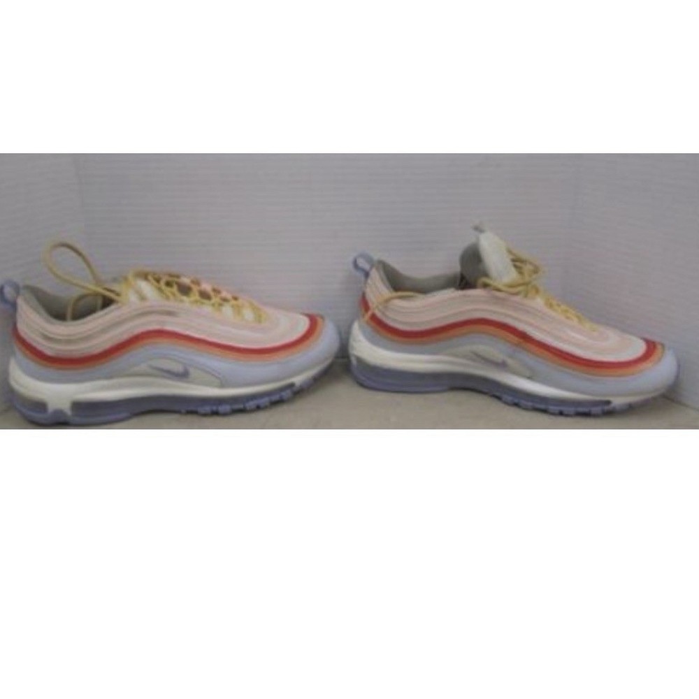 Experience vibrant style with these Nike Air Max 97 sneakers. The iconic wavy design features a captivating blend of pastel pink, orange, and light blue hues, creating a playful and eye-catching aesthetic. The signature Air Max cushioning provides unparalleled comfort with every step, while the durable rubber outsole ensures excellent traction. Department: Unisex Adults UK Shoe Size: 7.5 Model: Nike Air Max 97 Product Line: Nike Air Max Theme: Retro Upper Material: Textile Features: Breathable, Cushioned, Performance Shoe Width: Standard EU Shoe Size: 42 Performance/Activity: Running & Jogging, Walking Accents: Logo, Layered Style: Sneaker Type: Athletic Keywords: Air Max 97, Running Shoes, Women's Sneakers, Multi Color, Pastel, Lightweight, Comfortable, Athletic, Casual Wear, Fashion Sneakers, Streetwear, Sporty, Vibrant