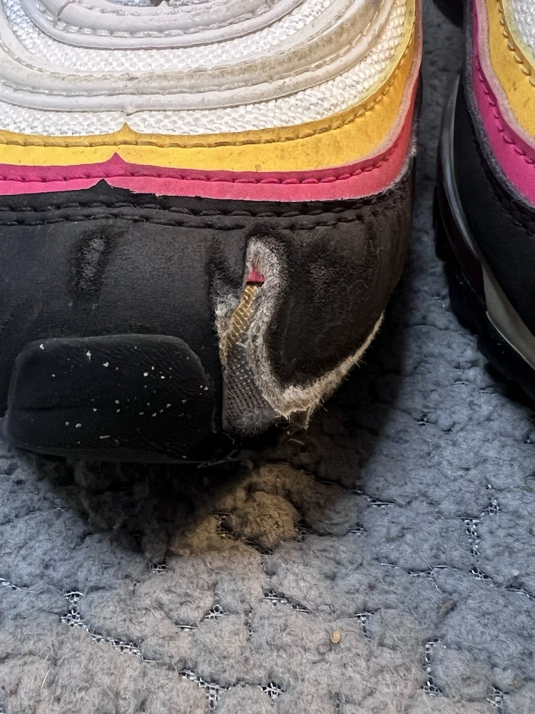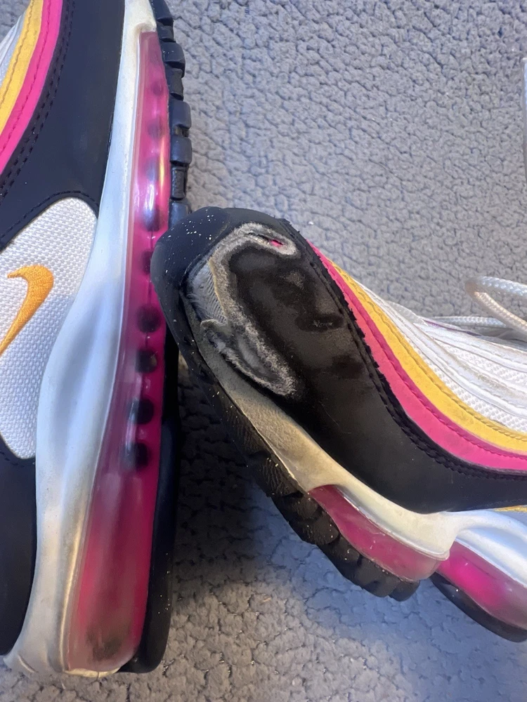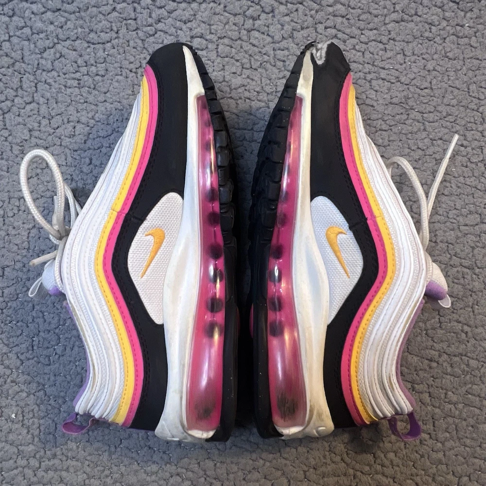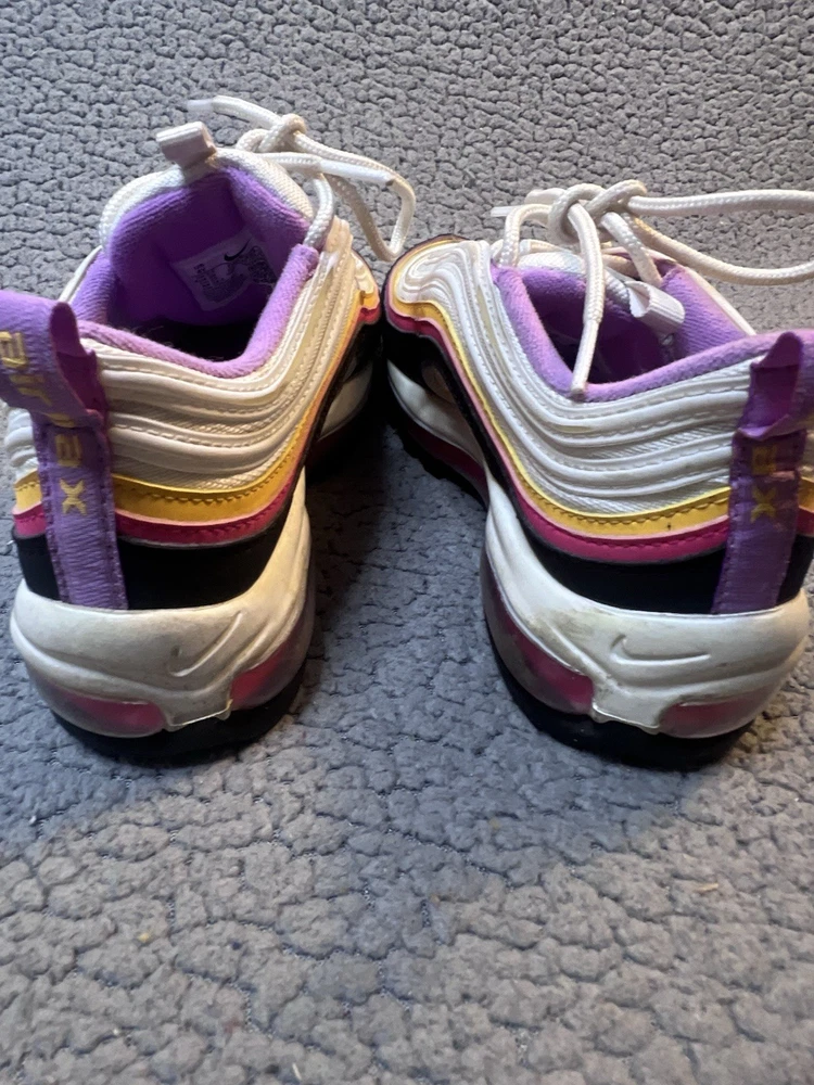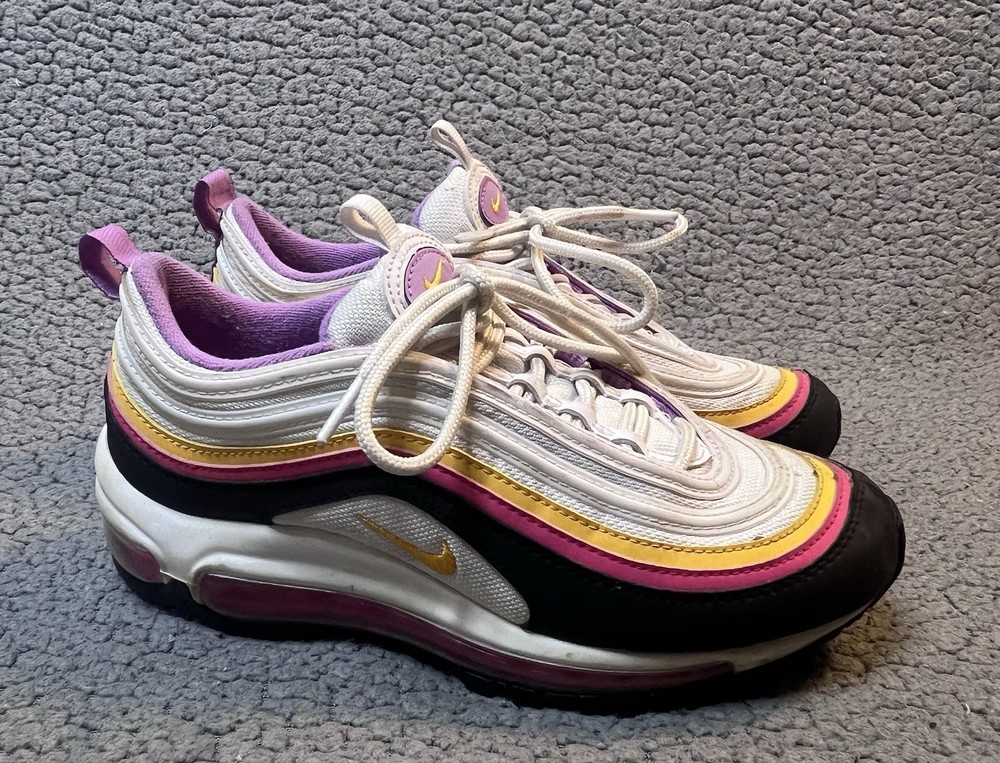 Nike Air Max 97 GS Dawn & Dusk Sneakers Girls Size 4Y White And Yellow DM8353100 good condition any flaws are shown in photos one shoe has what looks to be a slice on front as shown in photos other than that shoes are in good condition SKU(A315)