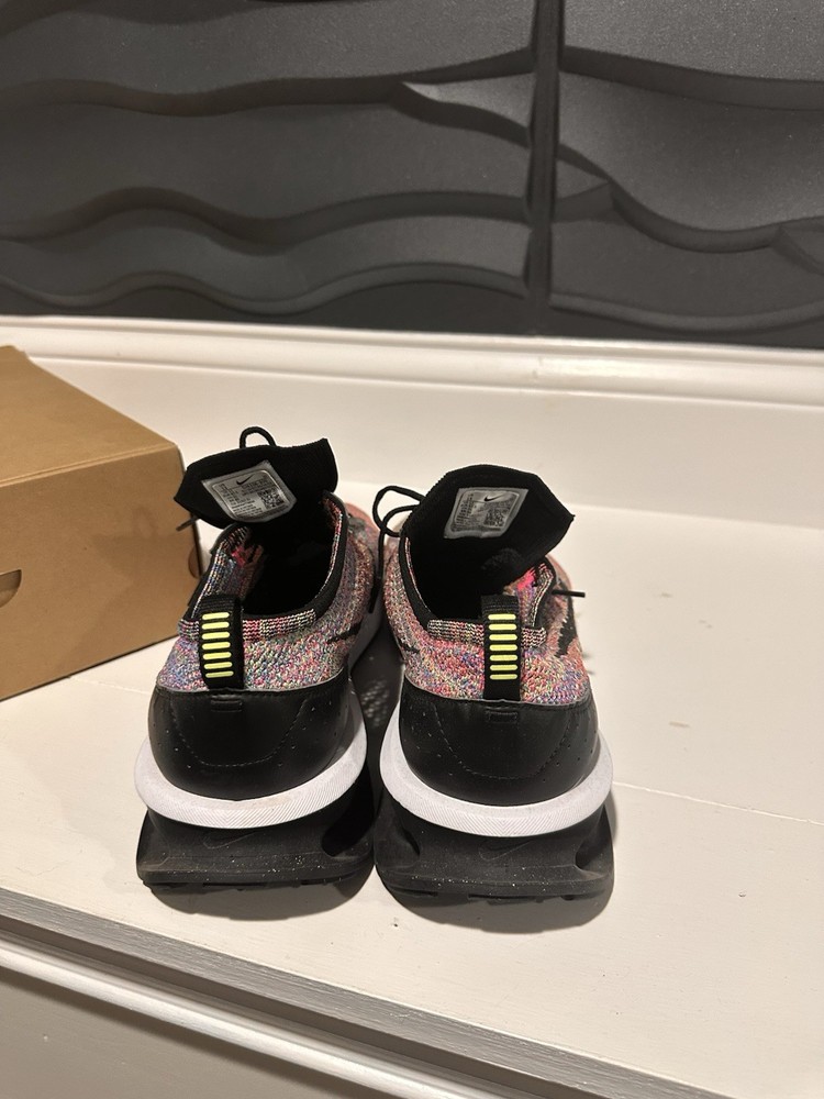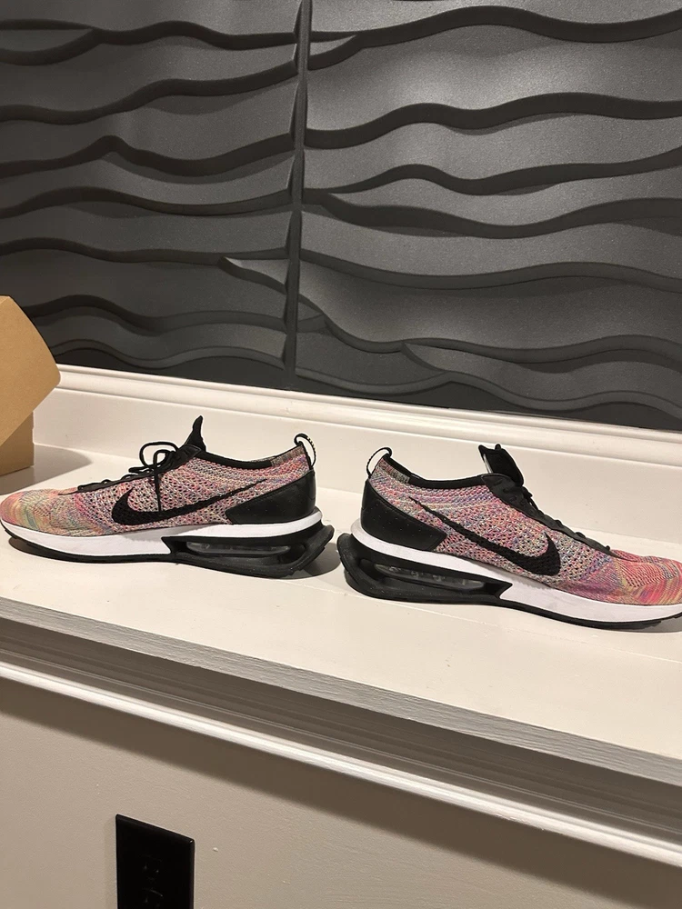 Elevate your sneaker game with the vibrant Nike Air Max Flyknit Racer, a perfect blend of style and comfort. Featuring a unique Ghost Green/Pink Blast/Photo Blue/Black colorway, these kicks are sure to turn heads while providing the signature Nike Air Max cushioning you love. The Flyknit upper material offers breathability and a snug fit, making them ideal for both athletic activities and casual wear. This pair, styled with a sleek DJ6106-300 code, comes in a men's size 13 and boasts the latest in Nike's storied product line. The 2022 release ensures modern technology and design, while the multi-color nickname emphasizes the shoe's bold aesthetic. Step into the year with confidence and flair with the Nike Air Max Flyknit Racer.