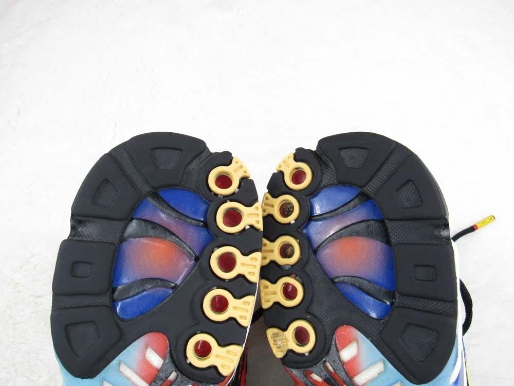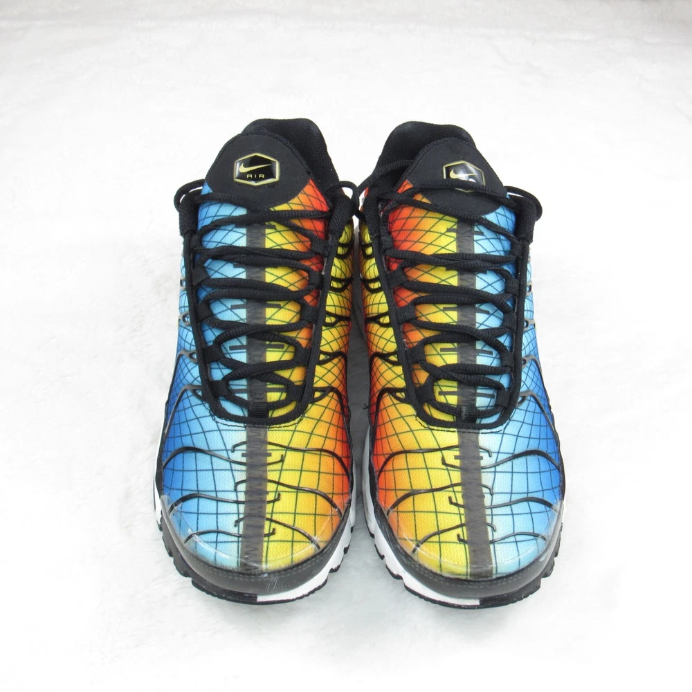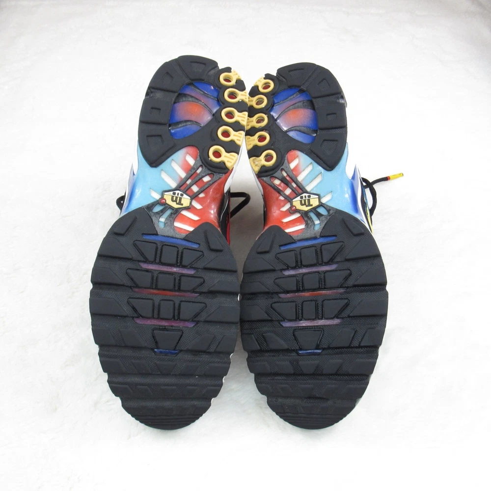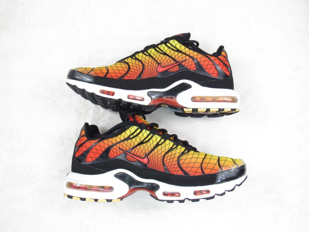 Step into vibrant style with the Nike Air Max Plus TN SE Greedy Black White Yellow, a sneaker that brings bold design to your everyday wear. The iconic silhouette is enhanced with a colorful palette, catering to those who appreciate a splash of vibrancy in their attire. Designed for both men and available in a size 10.5 (US), these shoes promise a comfortable fit for all-day wear, whether you're hitting the streets or just enjoying a casual day out. The Nike Air Max Plus utilizes a synthetic upper for durability and a cushioned insole to ensure your feet stay comfortable during walking or any active pursuit. The low-top shaft style and standard shoe width offer a snug fit without compromising on style. The sneaker's lace-up closure ensures a secure feel, making it an ideal choice for both activewear and casual outings. With its striking look and enduring comfort, this pair is a standout addition to any collection. Nike Air Max Plus Tn SE "Greedy" AV7021-001 Condition: Pre-owned item in good condition. Shows signs of use, including creases on the upper due to wear, minor scuffs on the hard plastic area at the front, minimal wear on the outsole, a few loose threads, and traces of dirt. Additional details: Size: US 10.5 Accessories: Does not include the original box or any additional accessories. Note: The shoes have received a quick cleaning; however, they may still show traces of dirt on the outsole or surface. Please make sure to carefully review the photos before making a purchase. Feel free to ask any questions if you need more information about this pair.