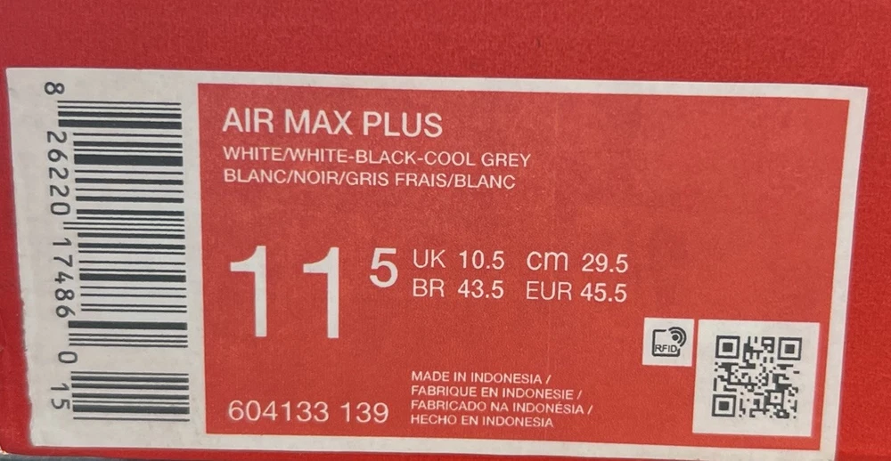 These Nike Air Max Plus sneakers are a game-changer for workouts and everyday wear! The fit is snug yet breathable, thanks to the foam insole, and the rubber outsole grips well on any surface. The white and grey colorway stays fresh, matching any outfit. Whether hitting the gym or running errands, they keep my feet comfy all day. A must-have for sneaker lovers who want both style and performance!