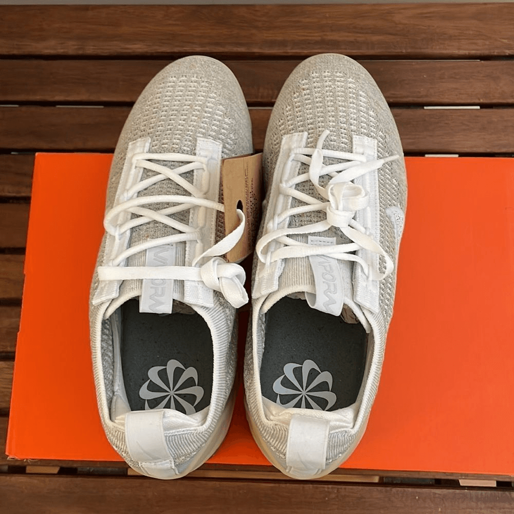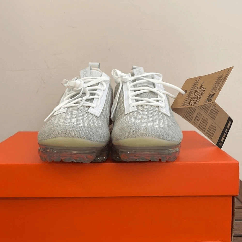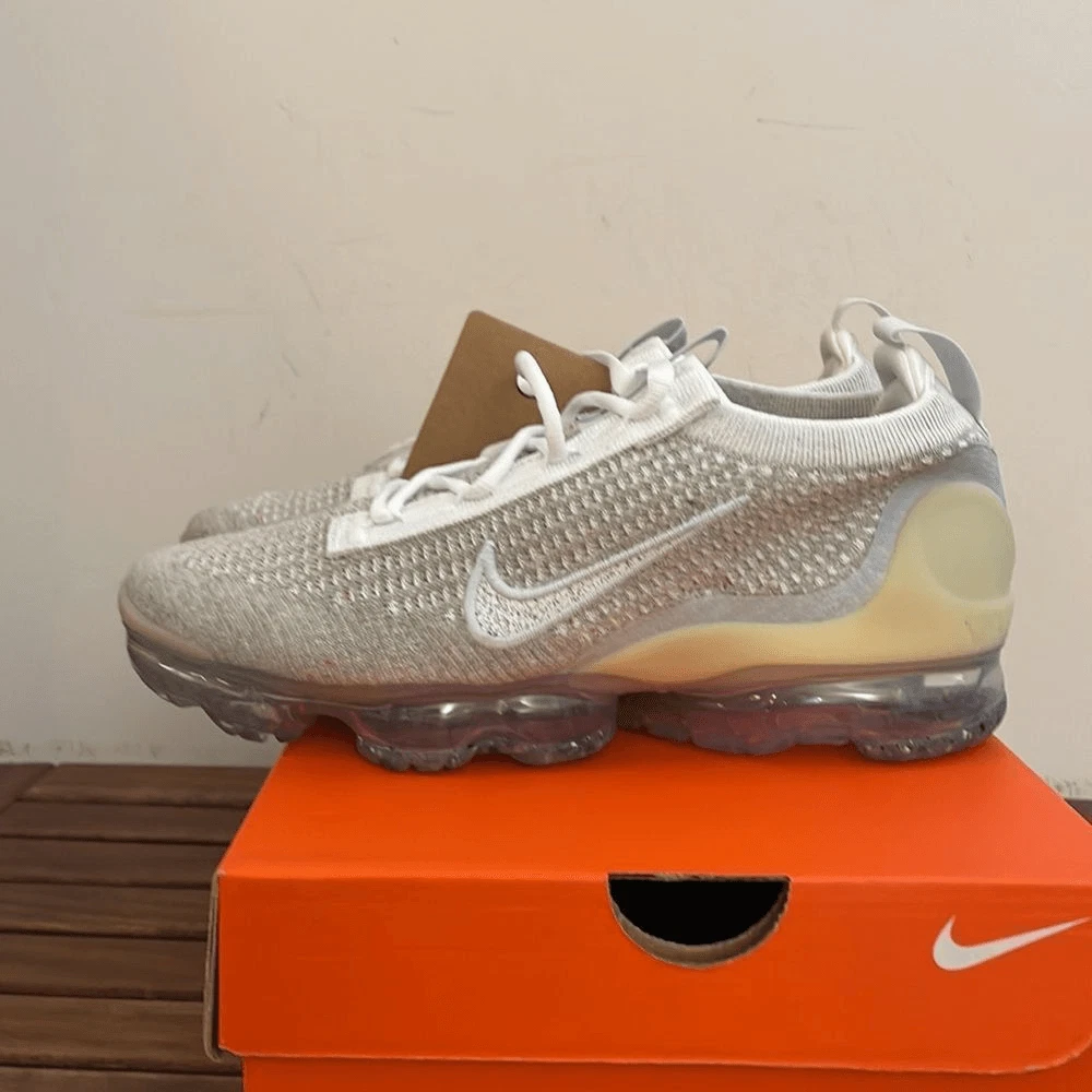 Brand new Nike Air VaporMax 2021 FK Size: Women 8 Men 6.5 Style code: DC4112-100 Color: WHITE/PURE PLATINUM/METALLIC SILVER/WHITE This color is sold out online! *************** Please take a close look of all pics and video, you will get the exact pair of shoes displayed in pics. All sales are final and I don’t accept return! Thank you!