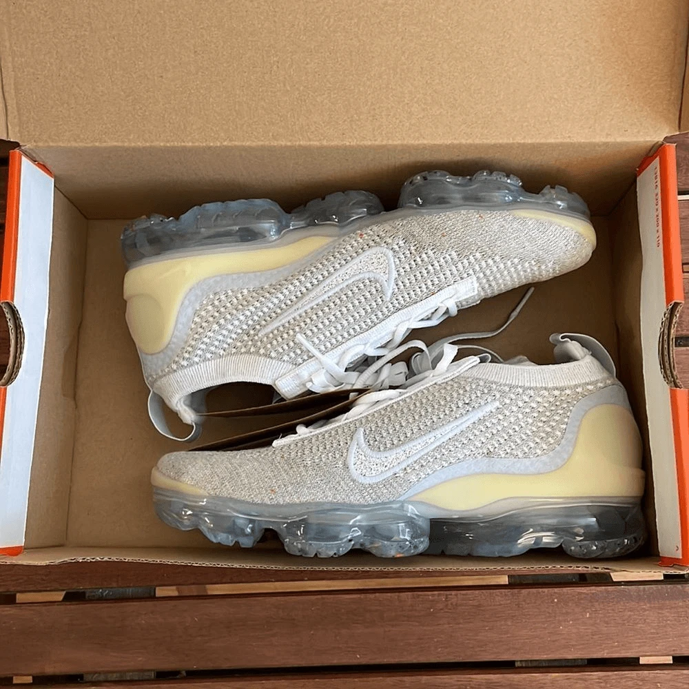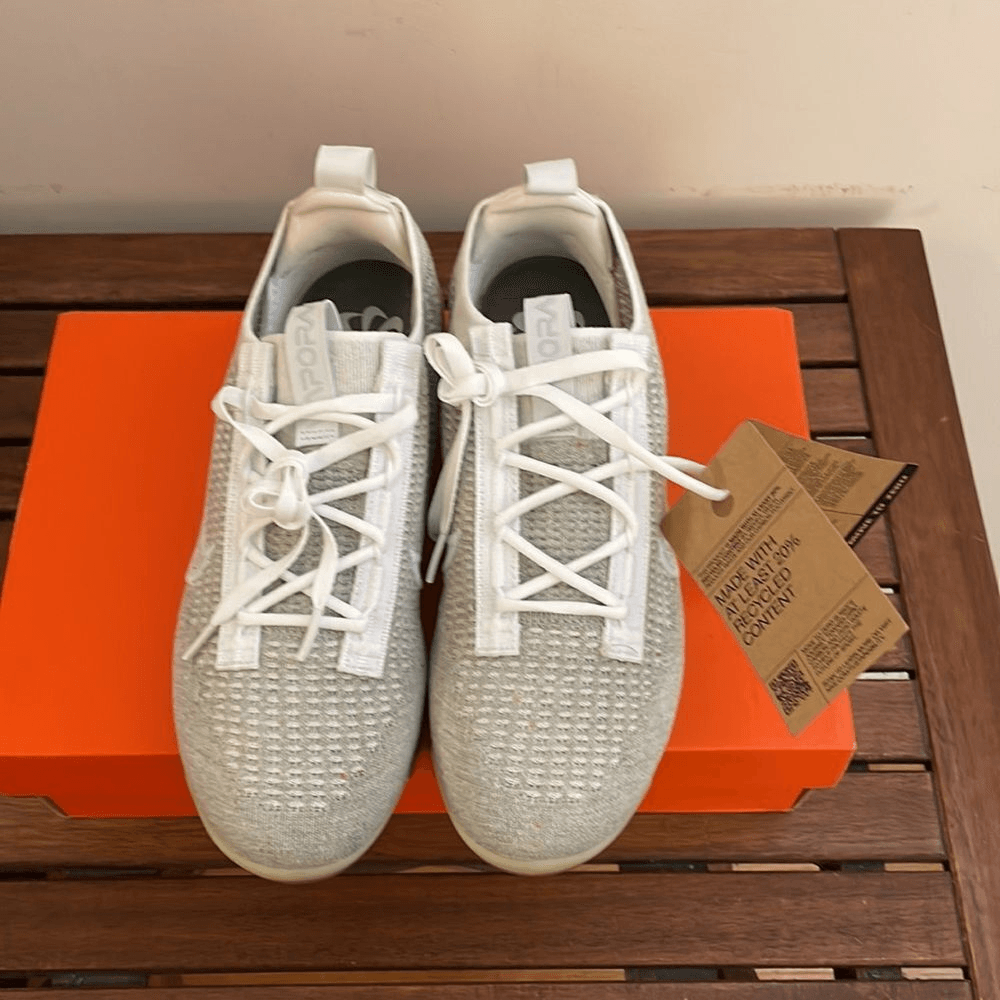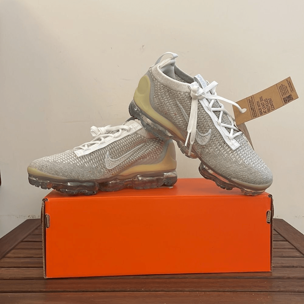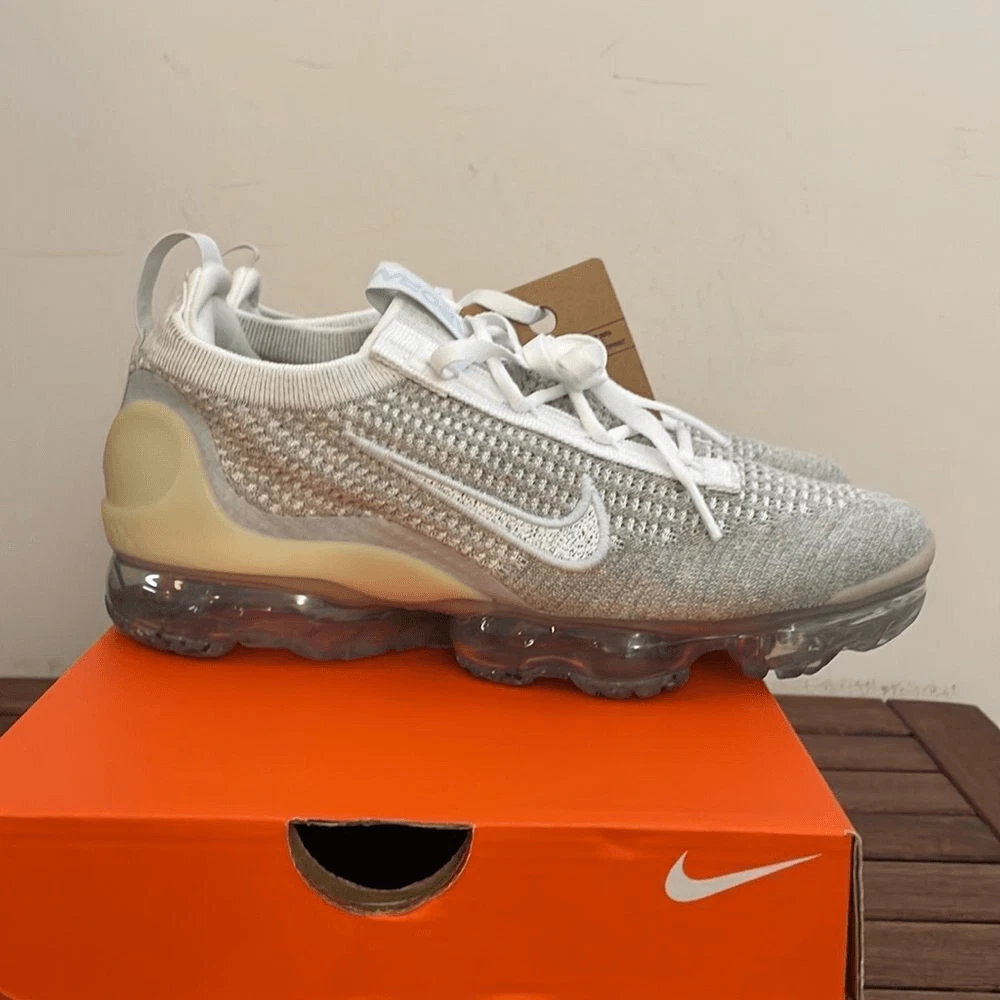 Brand new Nike Air VaporMax 2021 FK Size: Women 8 Men 6.5 Style code: DC4112-100 Color: WHITE/PURE PLATINUM/METALLIC SILVER/WHITE This color is sold out online! *************** Please take a close look of all pics and video, you will get the exact pair of shoes displayed in pics. All sales are final and I don’t accept return! Thank you!