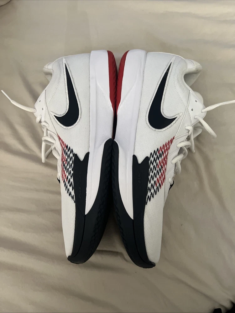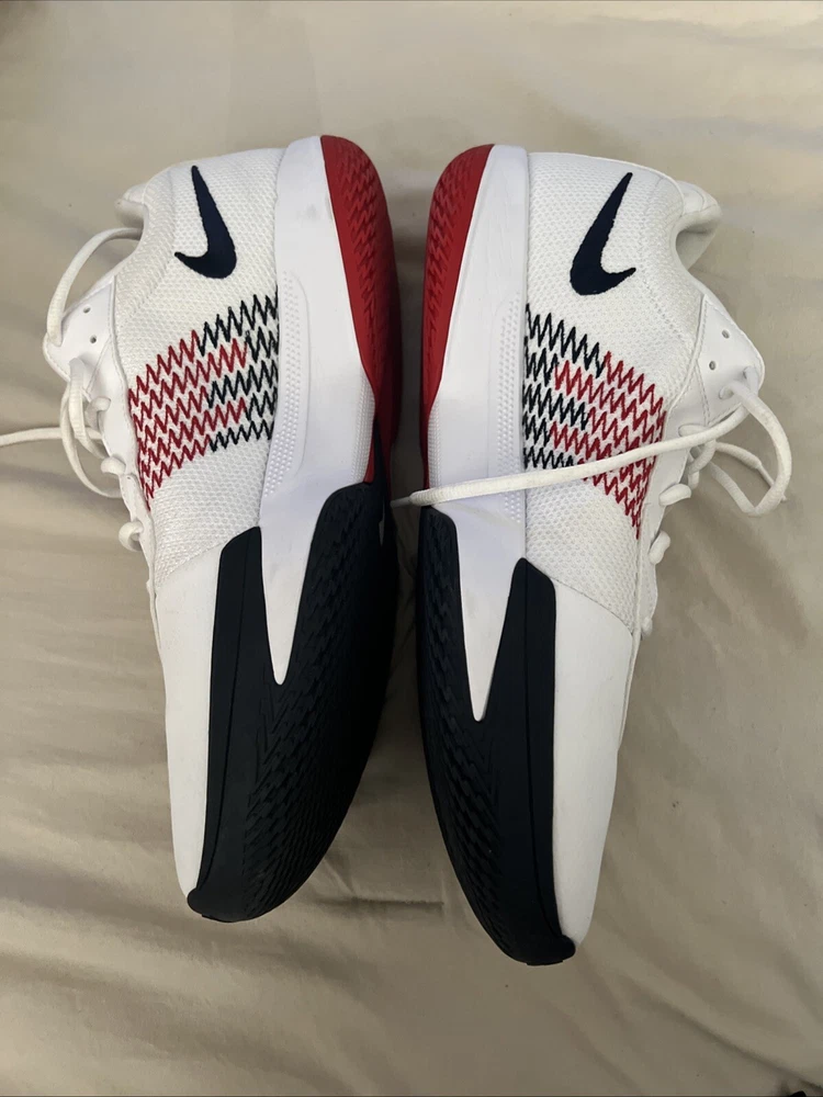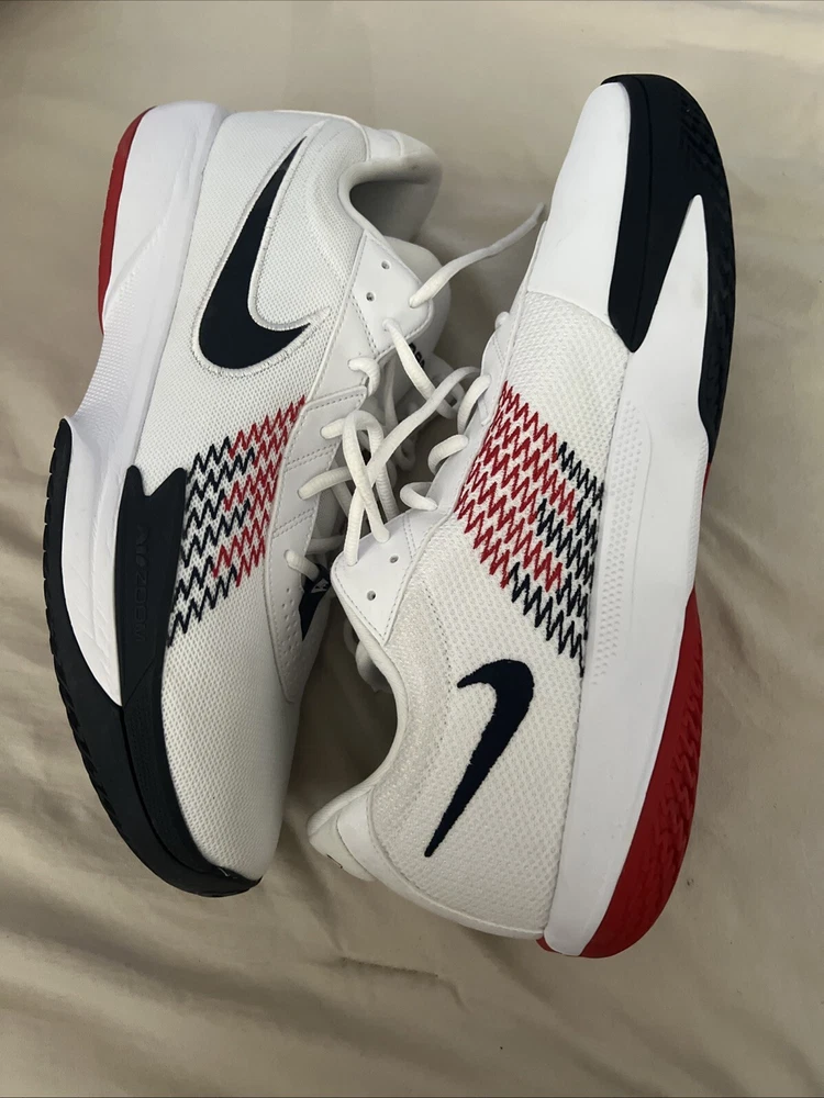 Shipping without box, just shoes Elevate your activewear game with these Nike Air Zoom GT Cut 3 sneakers, featuring a sleek white and obsidian-sport red colorway with a USA theme. These shoes are perfect for gym and training, walking, school, basketball, running, and jogging, making them a versatile addition to your shoe collection. The synthetic upper material ensures durability and comfort, while the lace-up closure provides a secure fit. These shoes are part of the Nike Air Zoom product line and have a low-top shoe shaft style, making them suitable for casual wear and workwear as well. With a style code of HM9425 100 and a release year of 2024, these Nike Air Zoom GT Cut 3 sneakers are a must-have for any sneaker enthusiast. Get yours today and experience the comfort and performance that only Nike can provide.