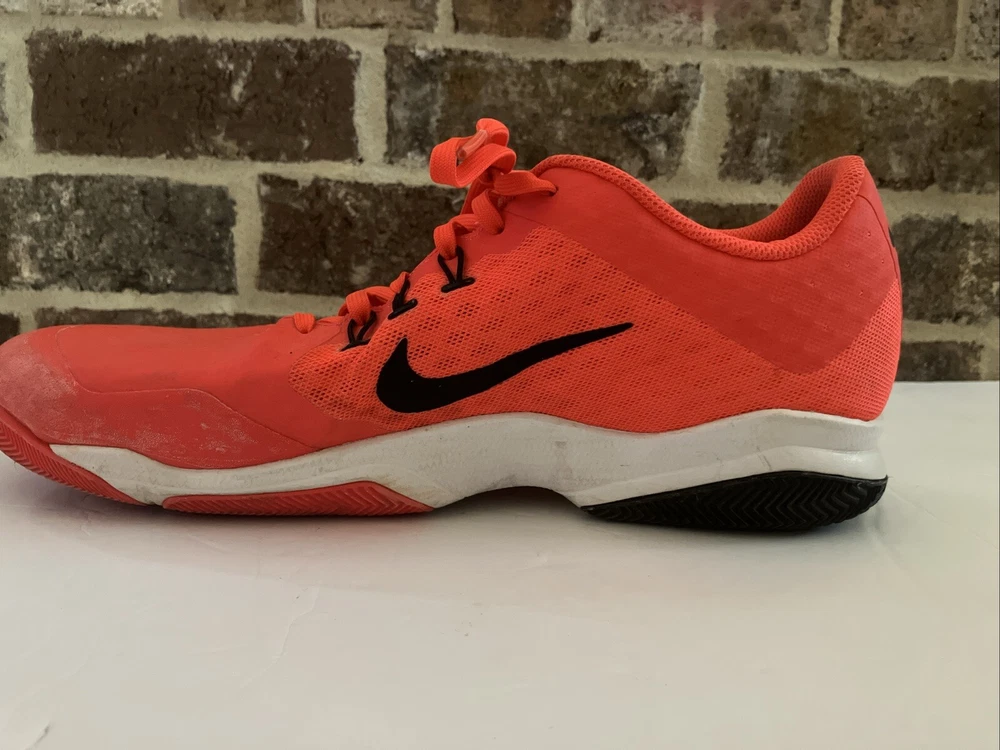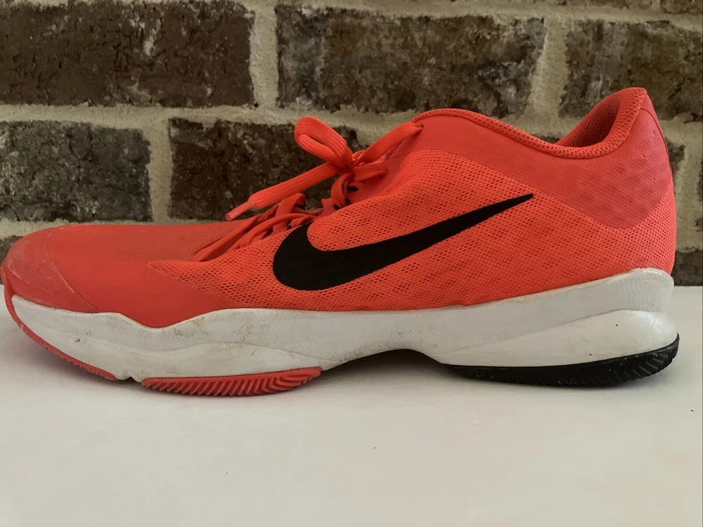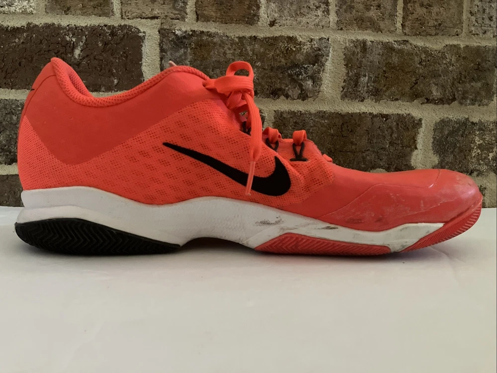 Pre-owned Men’s Pink Nike Air Zoom Ultra size 13. Plenty of tread life left. Review each photo carefully and please ask all questions before purchasing. FROM NIKE: Nike AIR ZOOM ULTRA Nike AIR ULTRA is very lightweight and structurally excellent men's tennis shoes. The shoe also suprises with their very good damping characteristics to be enjoyed on any surface. Very strong breathability ensures that during the game will constantly remove perspiration on your body and you will not be disturbed when submitting the best possible performance. Outsole offers a very good traction. very low weight, excellent traction, the Nike Air Zoom unit in the heel provides low profile responsive control, TPU outsole in the midfoot support comes from the sides and stability mesh and synthetic materials are breathable, lightweight and fits well