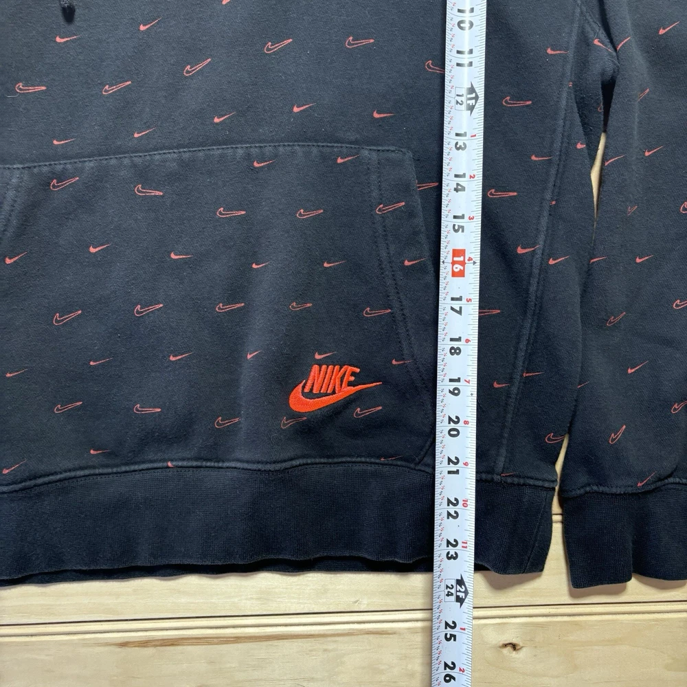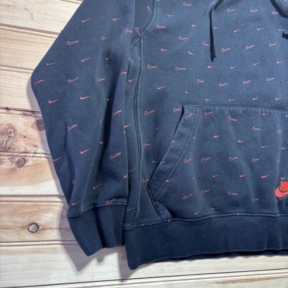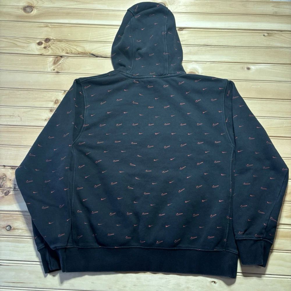 Nike All Over Print AOP Swoosh Bred Hoodie Sweatshirt Size Small Black Red