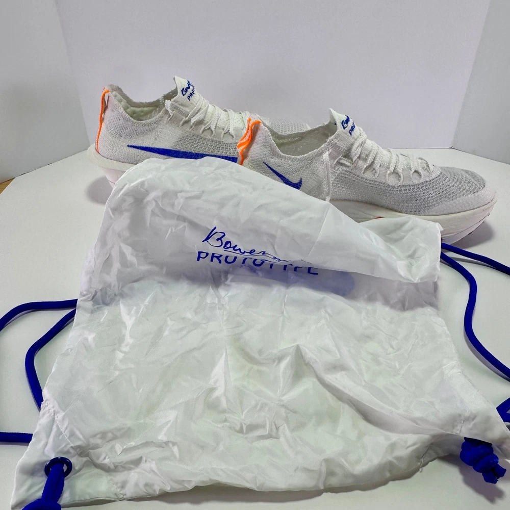 NWT Nike Alphafly 3 Prototype Bowerman running shoes in white with blue and orange detailing. Ultra-light, elite marathon design with Zoom Air pods and Bowerman prototype branding—rare size and colorway. • Brand: Nike • Style: Alphafly 3 Prototype • Color: White / Blue / Orange • Size: Men's 10.5 • Material: Flyknit upper / ZoomX midsole • Made in: Vietnam • Weight: 2 lb (ship) Condition: New With Tags — includes Bowerman prototype bag. ⸻ Keywords nike alphafly 3 prototype, bowerman lab, elite running shoes, racing shoes mens, zoomx vaporfly, alphafly white blue orange, prototype running shoe, marathon racing shoes, nike zoom air pod shoes, rare nike prototype, holiday gift, Christmas gift idea, ready to ship