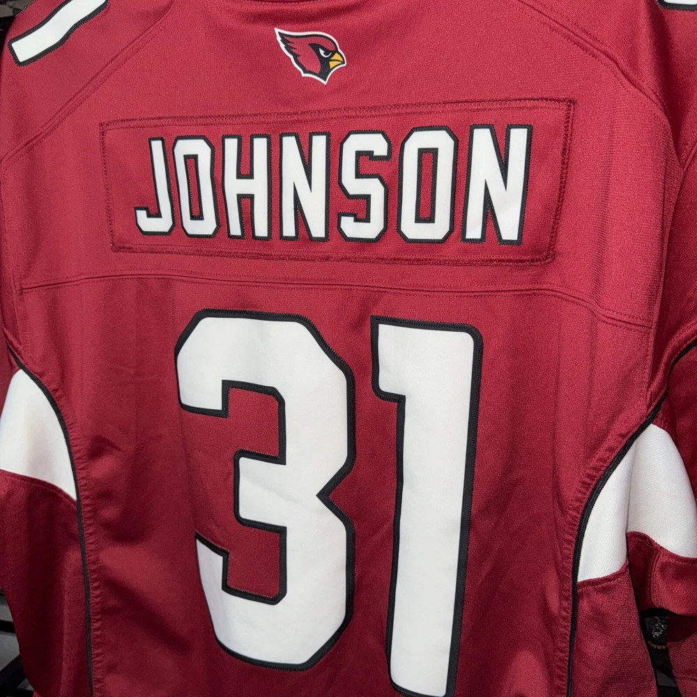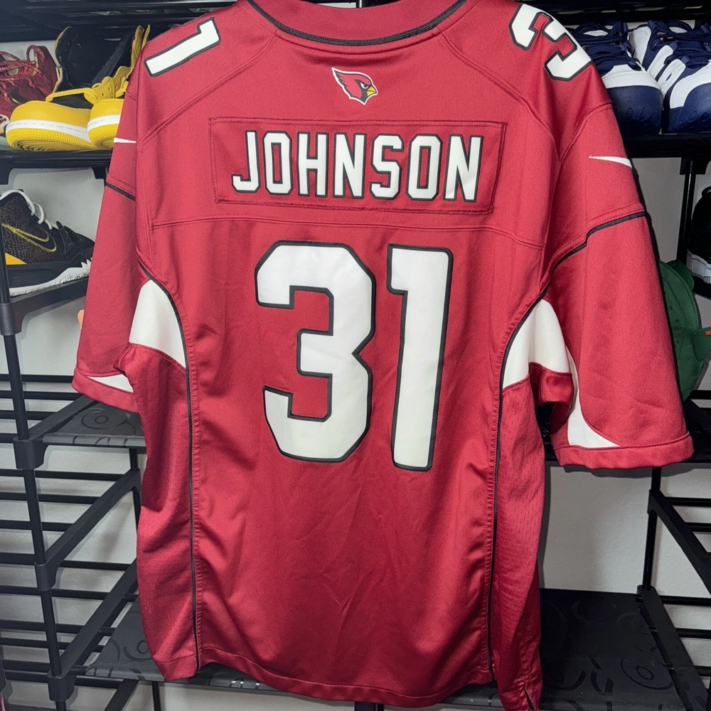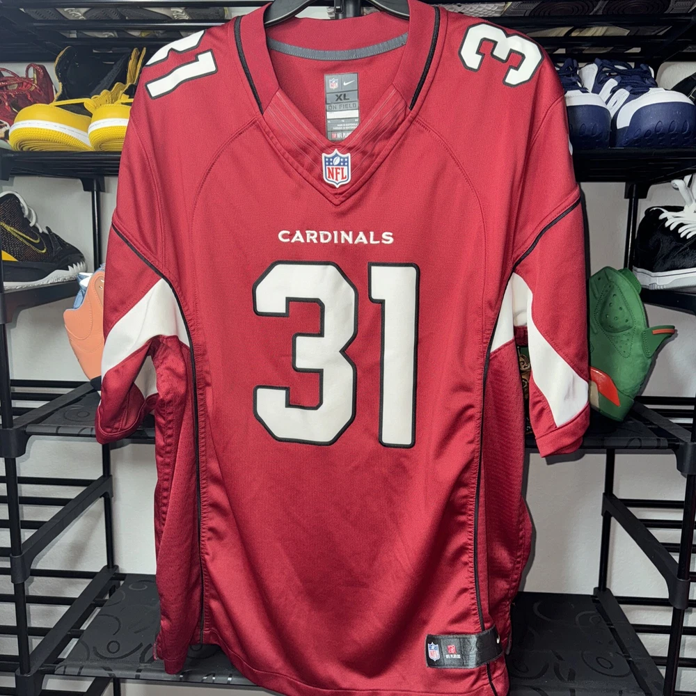 Show your support for the Arizona Cardinals with this Nike On Field NFL Jersey featuring David Johnson's #31. Made with high-quality materials and designed for comfort, this jersey is perfect for any football fan. The vibrant red color and XL size make it a standout piece for any fan apparel collection. Represent your favorite team during regular season games or simply add it to your collection of fan apparel and souvenirs. This jersey is a must-have for any Arizona Cardinals fan and is made in Guatemala with precision and attention to detail. Get yours today and show your pride for the team!