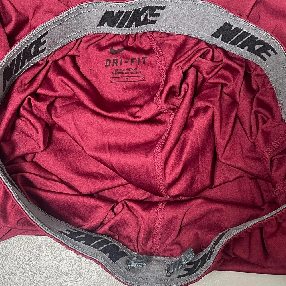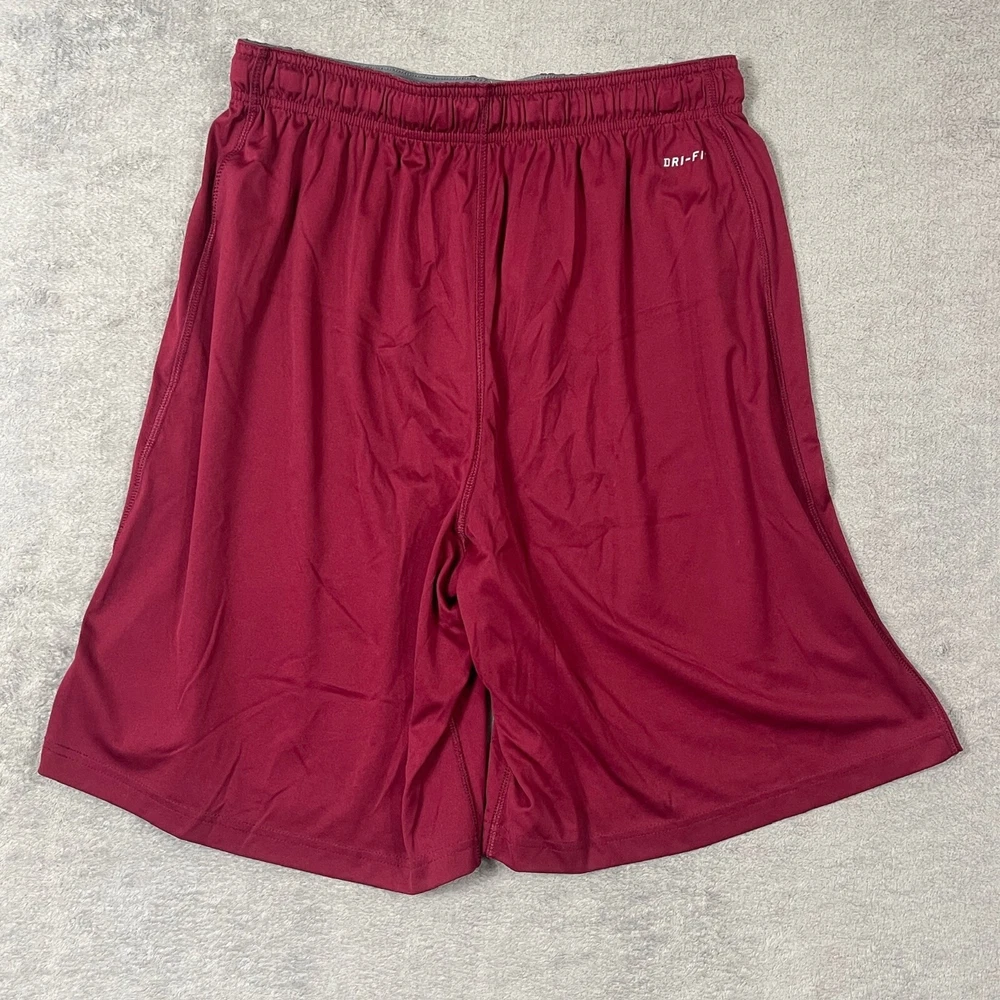 Inseam: 9 in Department: Men Handmade: No Performance/Activity: Basketball Personalize: No Color: Red Product Line: Nike Dri-Fit Fit: Athletic Waist Size: 32 in Size Type: Regular Model: Nike Dri-Fit Pattern: Solid Style: Athletic Size: L Seller Notes: “Excellent pre-owned condition, no tears, stains or strange odors” Occasion: Activewear Fabric Type: Blended Fabric Closure: Drawstring Brand: Nike Material: Polyester Features: Drawstring, Easy Care, Moisture Wicking Garment Care: Machine Washable