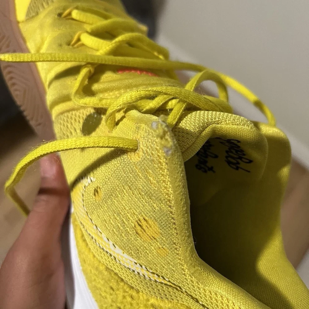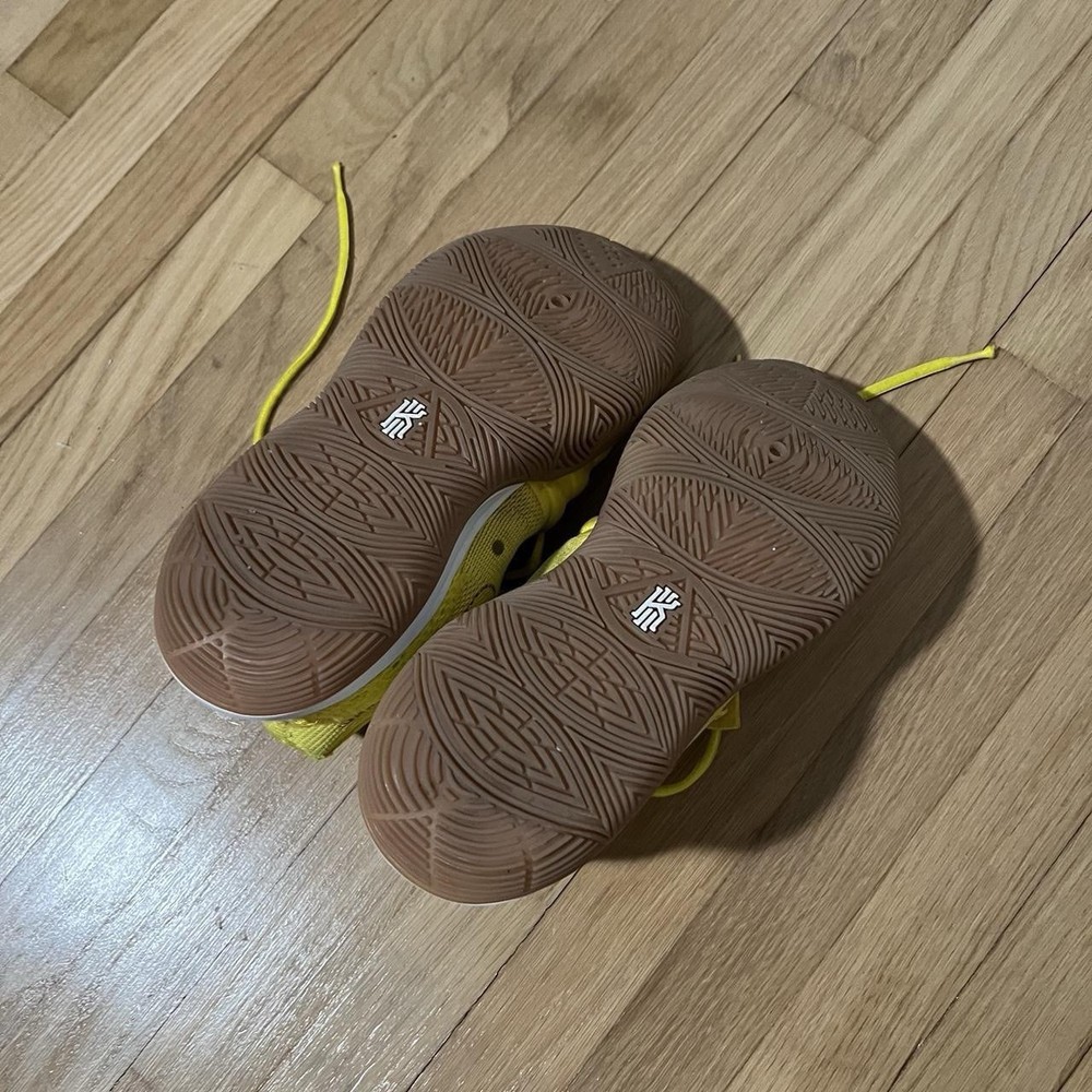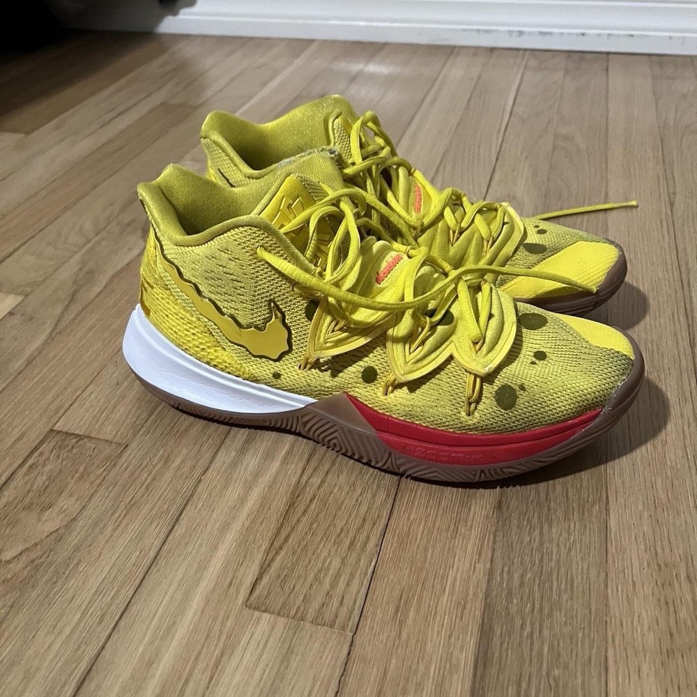 Step up your game with the Nike Basketball SpongeBob SquarePants Kyrie 5 Sneakers in a vibrant Opti Yellow colorway. These size 8.5 athletic shoes blend style and performance, featuring a unique design that pays homage to the beloved animated series. The sneakers are a part of the Nike Kyrie product line, known for their comfort and durability. Crafted with the quality Nike is known for, the sneakers boast the style code CJ6951-700 and were released on August 11, 2019. They are designed for men who appreciate a blend of nostalgia and modern flair. The iconic 'SpongeBob' nickname adds a fun twist to the sneakers, making them a standout addition to any collection.
