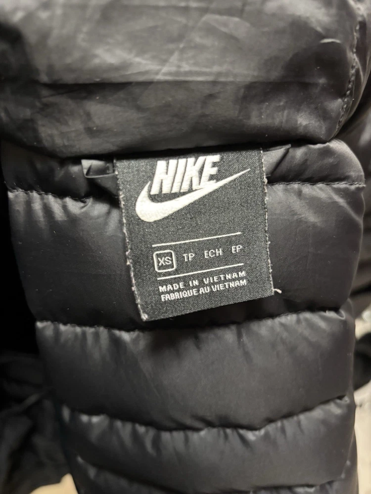 Nike Black Puffer Jacket Hooded Full Zip Pockets Men's XS