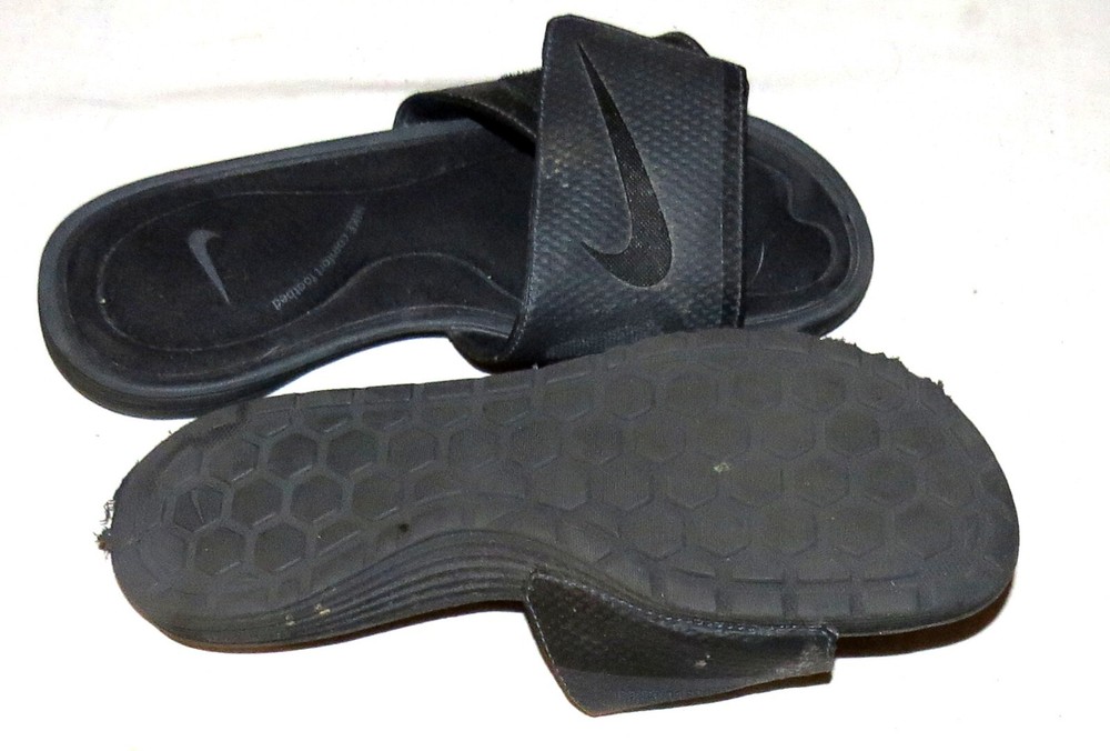 Nike Black Slides Sandals Size 10 -------------------------------------------------------------------- We try to declare all issues. Any white spots in the pictures that have not been mentioned are more than likely glare from the camera flash, but if you have any doubts, please don't hesitate to ask. Please look at our other auctions, and especially our ebay store items, and save on shipping with multiple wins Please email us with any questions. Honest Shipping : We do not insult your intelligence by hiding the shipping costs in the price of our items, and then offering "free" shipping - trying to fool you into thinking that we are absorbing the shipping costs. What nonsense! Our shipping costs are based on an estimate of the shipper's rates, ebay shipping fees, plus a small handling charge. If you can find the same item with a cheaper total cost - purchase price plus shipping - anywhere on the web - please contact us. We cannot guarantee to beat it (because of distance-based shipping), but will give it our best shot. Please be sure that you understand, and are comfortable with, the total costs before making your purchase. If you have any questions - please ask first. Combined Shipping: We always offer combined shipping for multiple purchases. Please add your purchases to your ebay "cart". When you have completed your purchases, (either multiple items from a single listing, or items from two or more listings), please contact us, using the "Requests total from seller" button, and we will generate a final combined-shipping invoice.. Note: You will possibly receive an earlier invoice (or invoices) generated automatically by ebay. These are accurate for single item purchases, but often inaccurate for multiple items, due to limitations with ebay's shipping calculator. Our combined shipping invoice will include a note stating that it reflects combined shipping. If you have any doubts - just ask. Shipping Methods: Unless otherwise noted, for each item we offer three forms of shipping: 1. Free: Personal pick-up: You can collect your purchase in San Jose, CA - with zero shipping charges. 2. Economy: One of : USPS Ground Advantage if the package qualifies, or USPS Media Mail if the package qualifies. 3. Expedited: for example, USPS Priority Express Mail We are always willing to at least consider any other valid shipping method - just ask. If the costs allow it, we will promote your package to a faster service where we can, at no additional charge to you. If shipping is not to a USA contiguous 48 state street address, or you request a faster or other shipping method, such as UPS Air, or Express Mail, then shipping costs may vary. Please allow at least 14 business days for delivery to the contiguous 48 USA states. Media Mail typically takes longer. More specific estimates are available on the USPS web site. For AK and HI , USPS Priority Mail should take 4 days or fewer, but USPS offers no time estimates for Parcel Post. Books, other printed matter, and media: We typically ship books, CDs, videos, and the like by Media Mail. This can be considerably slower than other services. If you need your book quickly, please let us know, and we will re-quote the shipping, typically at a higher cost. International Buyers - Please note: International mail is often slower than the estimates available on the USPS web site, so customers should allow a minimum of 14 days for airmail delivery - longer if your parcel is held in incoming customs. USPS no longer offers any international surface mail, or M-bag service. Air Mail is the only remaining option for international shipments. International buyers should double-check for mailing costs before bidding. Also: Import duties, taxes and charges are not included in the item price or shipping charges. These charges are the buyer's responsibility, so please check with your country's customs office to determine what these additional costs will be prior to bidding/buying. Additional charges are sometimes collected by the delivering freight (shipping) company on delivery or pick-up - do not confuse them with additional shipping charges. We do not mark merchandise with lower values, or mark items as "gifts" - US and International government regulations prohibit such behaviour. Questions. Please email us with any questions: If you have any questions, please ask at least 24 hours before end of auction as we have other commitments that require our attention, and are not always at the computer. We pack with care but after your parcel is delivered to the carrier we have no control over delivery times. Please ask all questions before bidding. Returns. Unless otherwise noted, we always accept returns - for any reason. The item must be returned within 30 days with all original packaging . The purchase price will be refunded when the item is returned in the same condition as it was shipped . If there is a relevant error in the listing description, we will also refund shipping in both directions. Problems & Issues. Please always contact us with any problems before leaving any feedback or DSRs. We will always do everything we can to resolve any issue. Once feedback has been left it cannot be changed, and we cannot guarantee to resolve your problems. Feedback: **We always work to earn 5-star feedback from you. If you have any concerns about this transaction, please contact us, preferably before bidding, but definitely before leaving feedback, so that we can do everything possible to resolve the issue.** If the transaction has gone well Positive feedback and 5-star DSRs - for each item, if you have bought more than one - is appreciated. Payment Method: For shipped purchases, all major credit card payments through Paypal. We cannot accept credit card payments directly. Payment Timing: Unless negotiated before the purchase is made, payment must be received within seven days of the listing's close. All non-paying bidders will be reported to Ebay. Wherever possible, orders are shipped within t