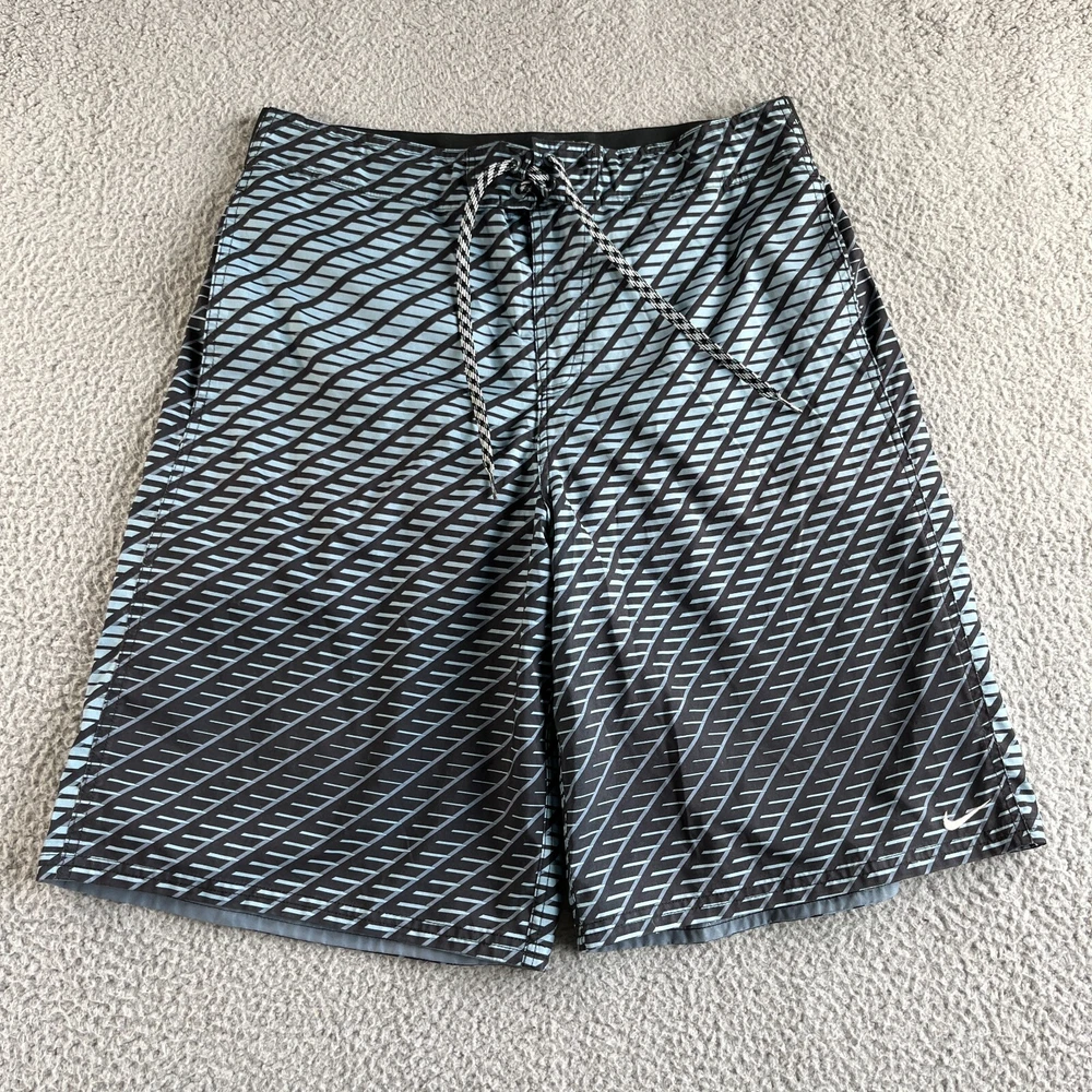 Nike Board Shorts Mens Large Blue Black Striped Swim Trunks Hybrid Outdoor Beach Condition: Pre-owned. Good condition. Please see all photos for condition and measurements. Please let us know if you have any questions. Thanks for shopping with us.