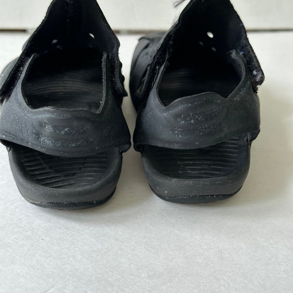 Toddler Size 7C Toddler Boys' Nike Sunray sandal Nike Sunray Sandals - LIGHT AND STRETCHY. Total toe coverage and outsole traction perfect for outdoor play. Two Hook-and-loop straps help make on and off easy. Very Good Pre-owned Condition #toddlersandal #nikesandal #nike #niketoddler #blacknike