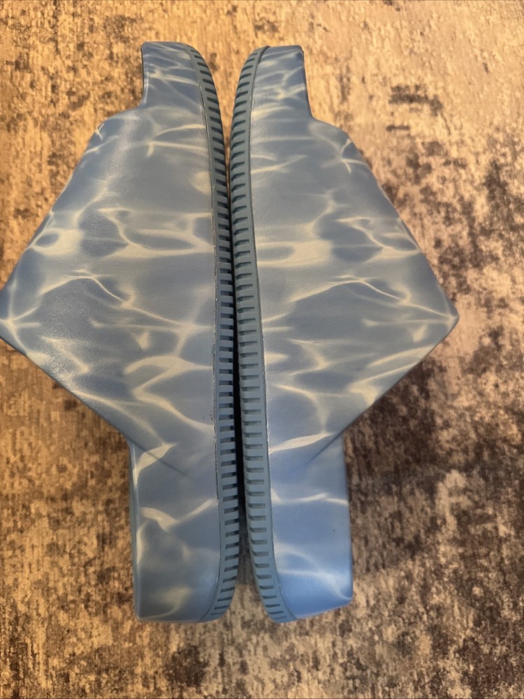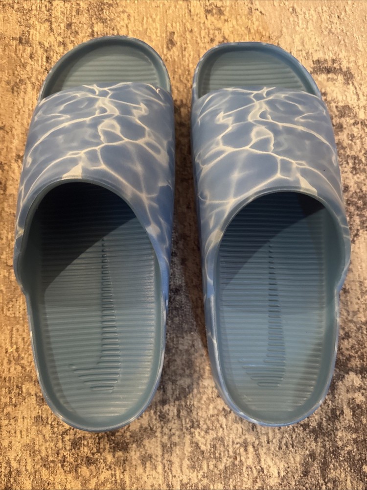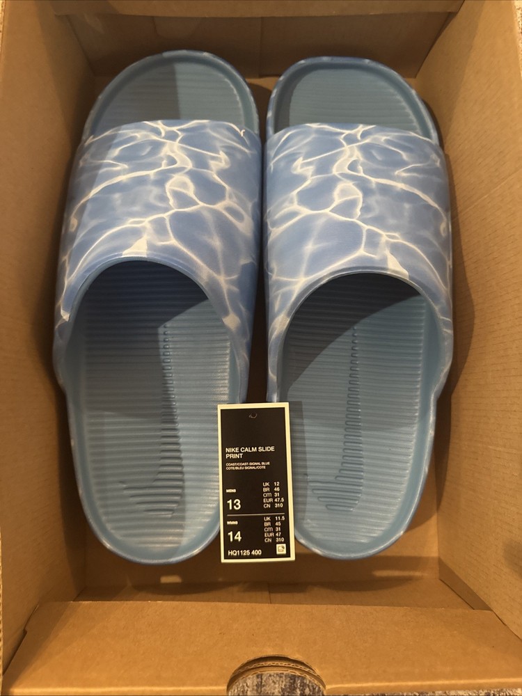 The Nike Calm Slide is a stylish and comfortable slip-on sandal perfect for activewear or casual occasions. Featuring an ocean blue color with Nike logo accents, this open toe slide is made with synthetic lining and outsole materials for added durability and comfort. Designed for summer, fall, and spring seasons, this shoe is a great addition to any man's footwear collection. Color: Coast/Coast-Signal Blue Style Number: HQ1125-400 Men’s Size 13, UK 12, Women’s 14