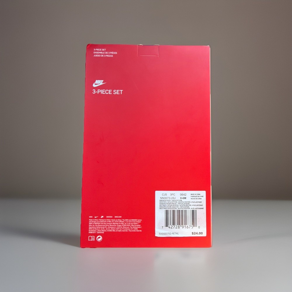 Nike Childrens Apparel Baby Bib, Bodysuit & Booties 3-Piece Gift Box 0-6 Months. Condition is New with tags. Shipped with USPS Ground Advantage.