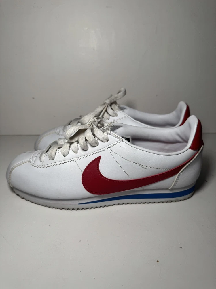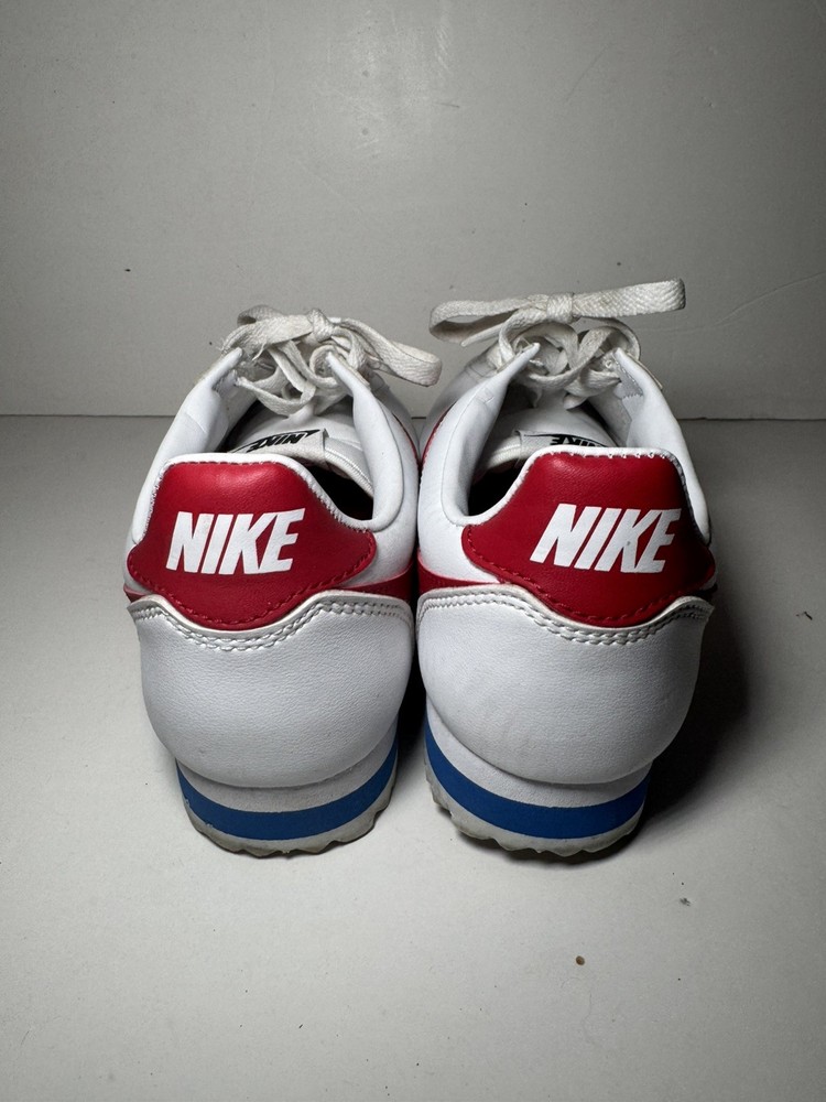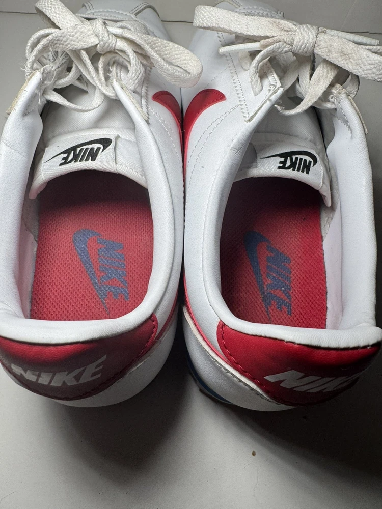Nike Cortez Trainers Shoes Leather, White Red Blue, Forrest Gump Retro - UK 5.5