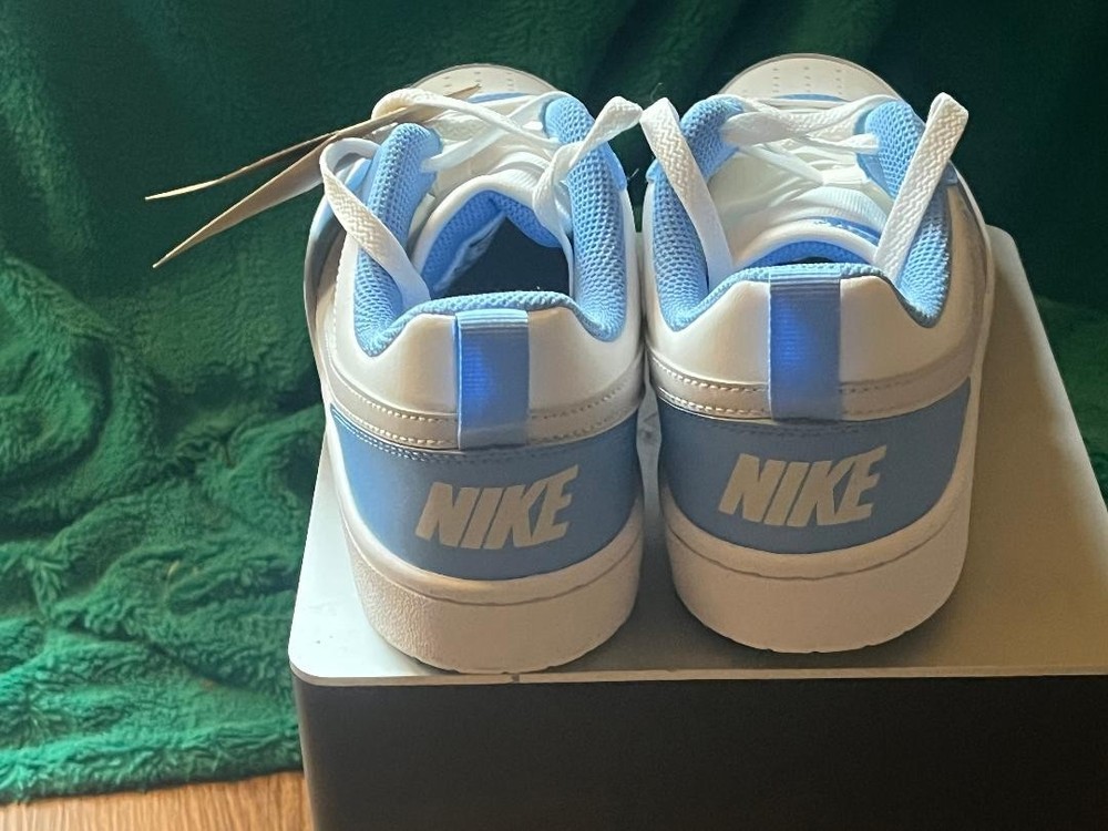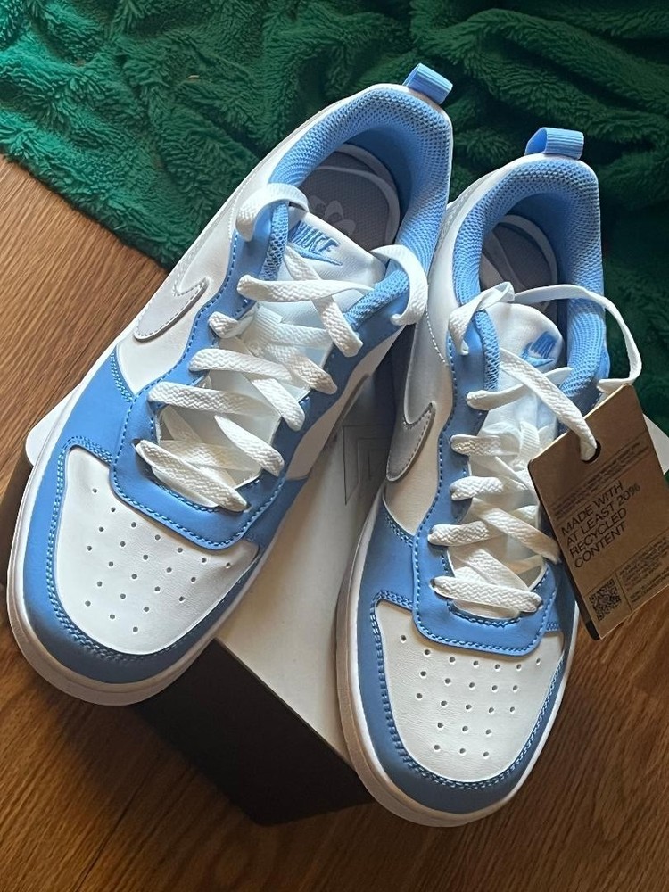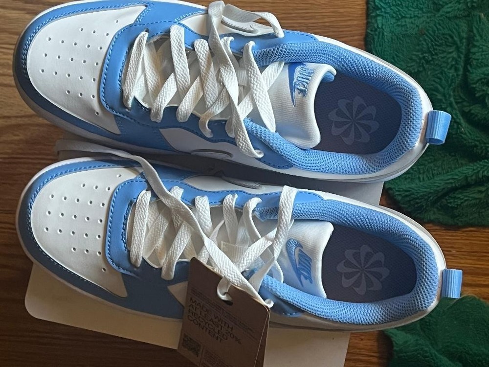 The Nike Court Borough Low Recraft University Blue/White 6Y is a stylish and comfortable sneaker designed for boys. Featuring the iconic Nike design, this athletic shoe is perfect for active kids. The blue and white colorway adds a pop of color to any outfit, while the rubber sole provides good traction for running and playing. With a UK size of 5.5 and a US size of 6Y, these shoes are sure to fit well and support active boys on the playground or court.