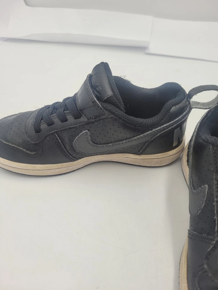 Elevate your little boy's style with these Nike Court Borough Low shoes. The black and white color combination paired with a pull-on strap closure and low-top shoe shaft style gives a trendy yet comfortable look. The shoes are made of leather and have a rubber insole for added durability. These sneakers are perfect for any season, whether it's winter, summer, fall, or spring. The round toe shape and solid pattern make them a versatile choice for any outfit. The shoes are available in boys' UK shoe size 10, US shoe size 10.5C, and EU shoe size 27.5. The Nike Court Borough model is a must-have for any young boy who loves colorful and stylish footwear. S