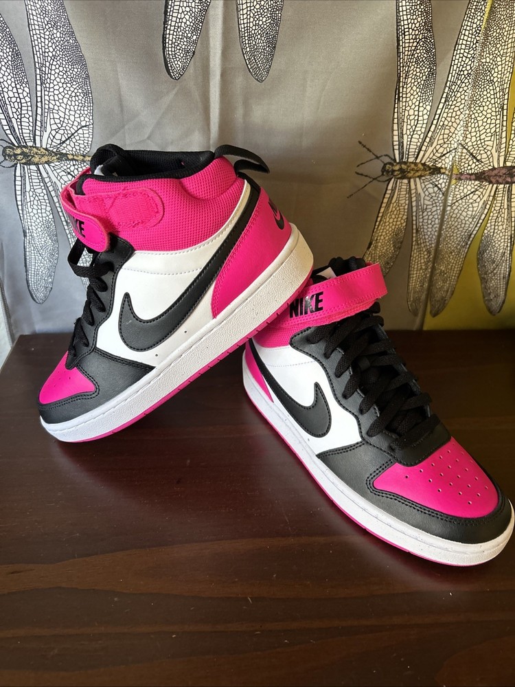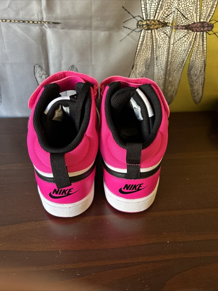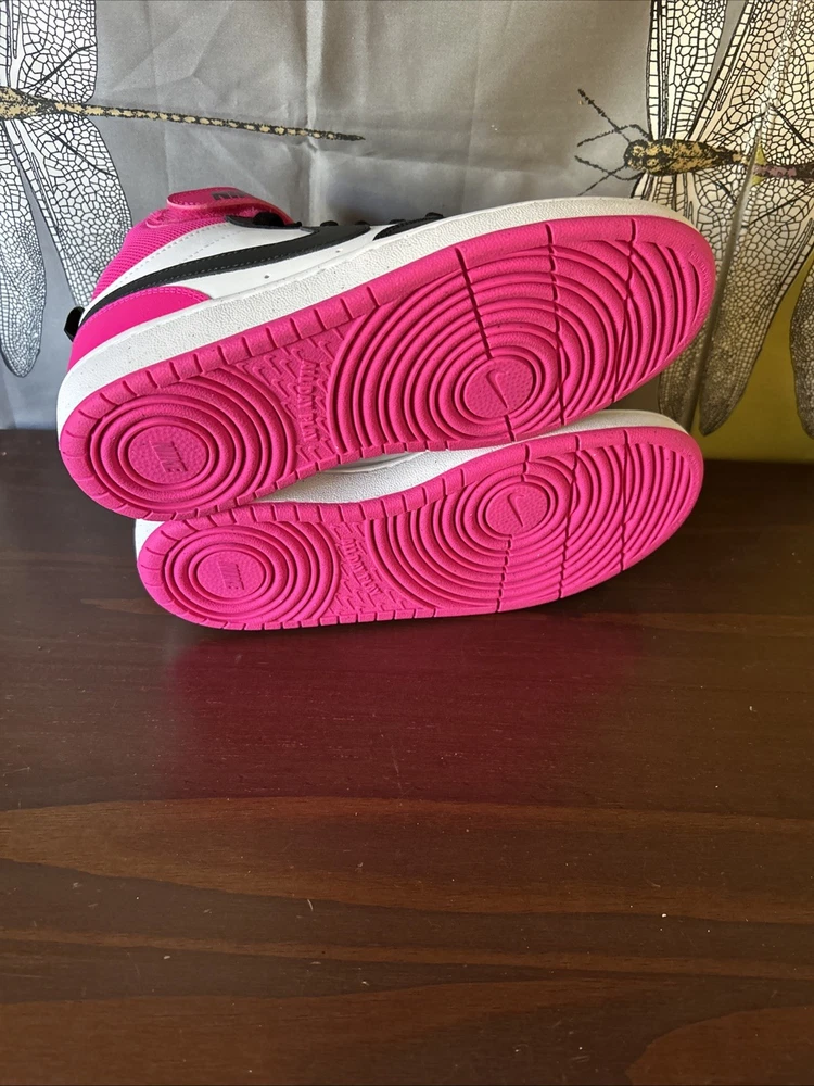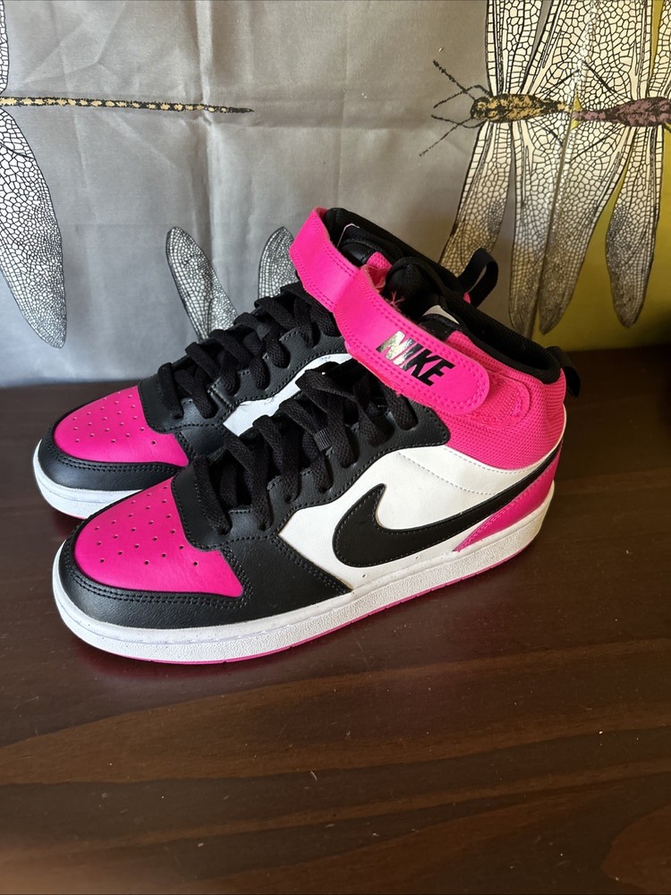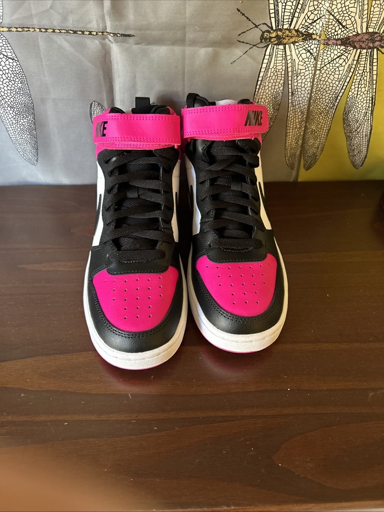 The Nike Court Borough Mid 2 BG in size 6.5Y or 8W is a stylish and versatile sneaker designed for boys. With a high top shoe shaft style in black and fierce pink color, this athletic shoe features a canvas lining, foam insole, and rubber outsole for comfort and support. Perfect for various seasons and activities, including boxing, this Nike Court Borough Mid 2 BG is a great choice for young athletes looking for both style and performance in their footwear.