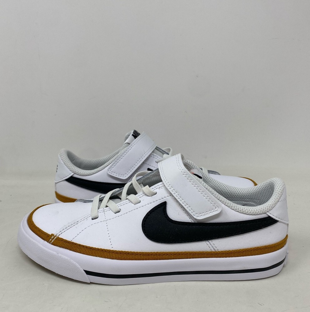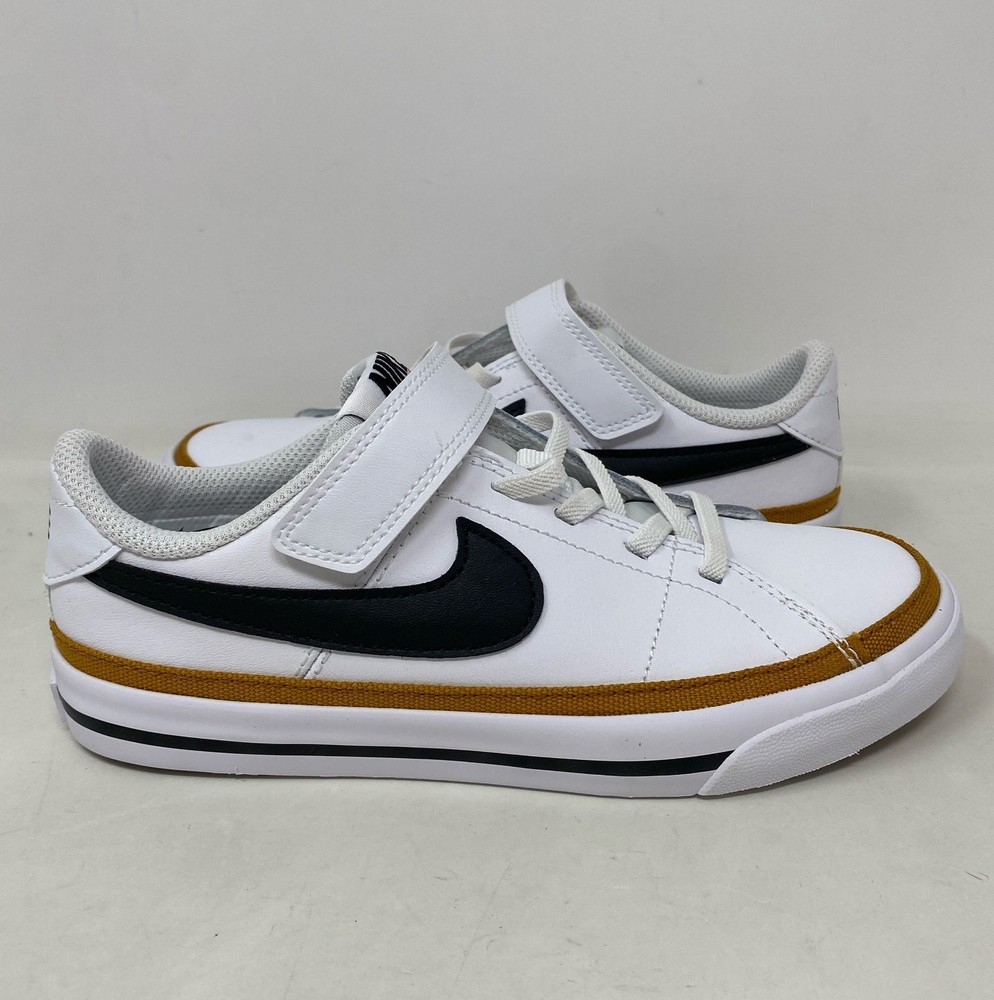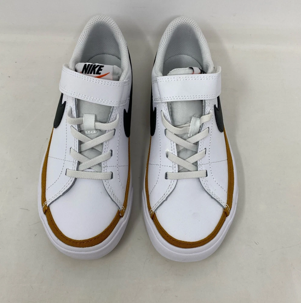 Nike Court Legacy Little Kids PSV Shoes White/Black/Desert Ochre - Size 1Y