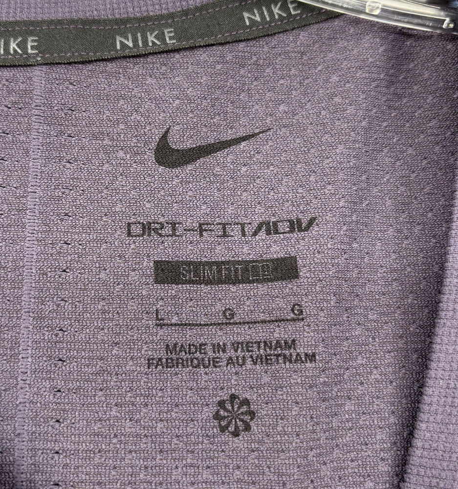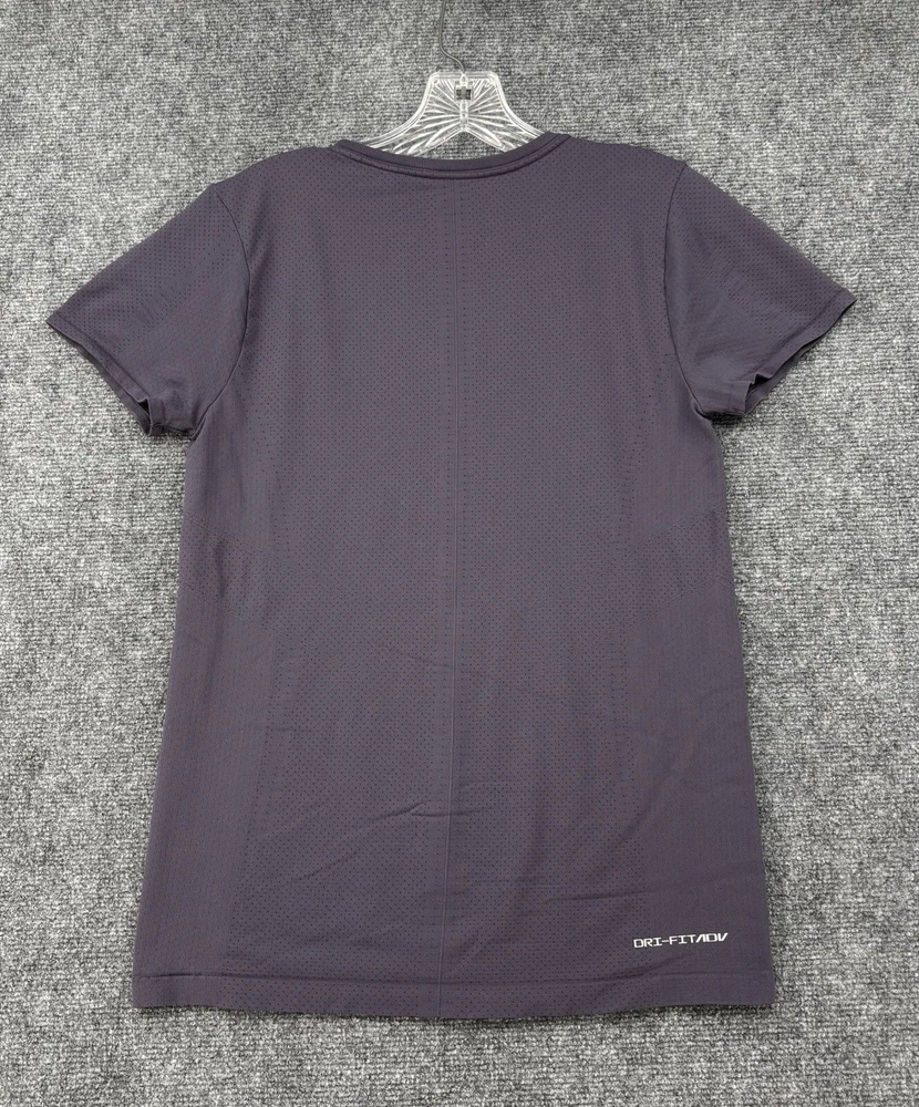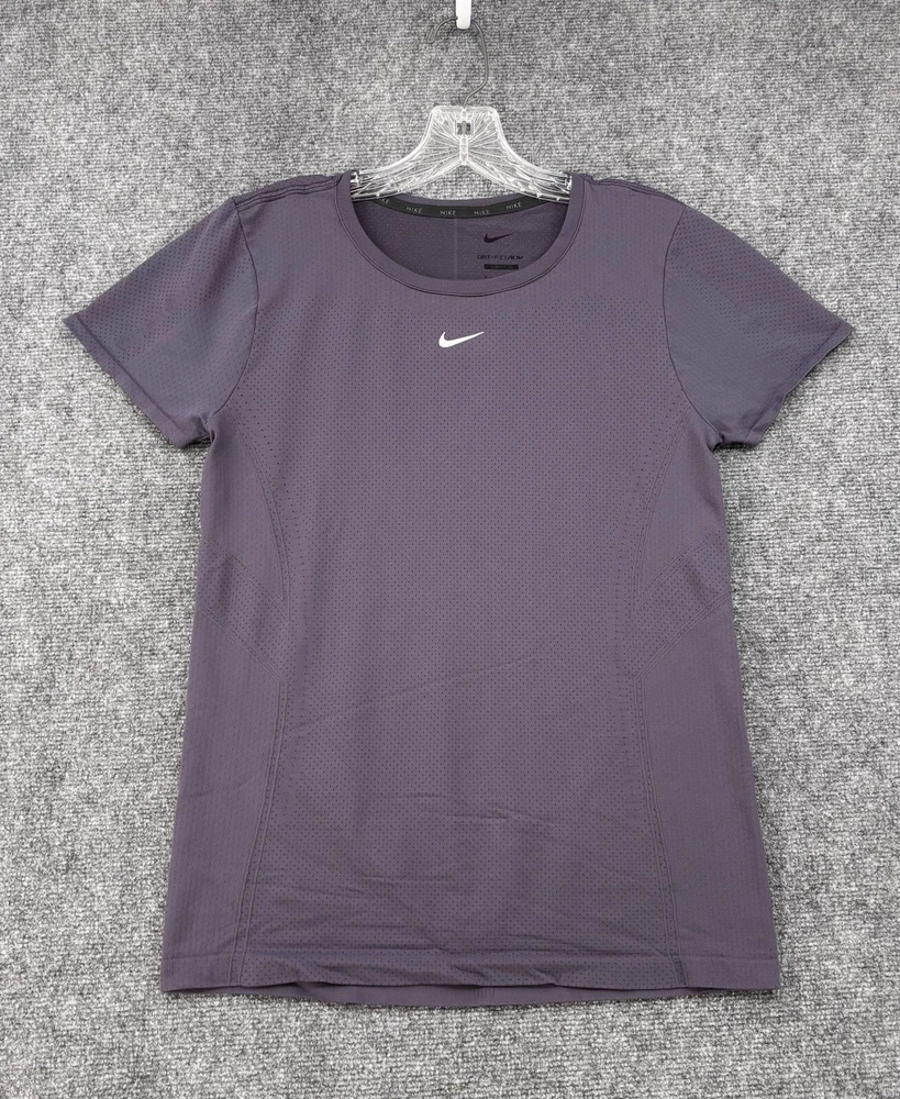 Model: Nike Dri-Fit Theme: Sports, Logo, Classic, Colorful, Preppy Style: Pullover Size Type: Regular Color: Purple Features: Slimming, Lightweight, Breathable, All Seasons, Easy Care, Moisture Wicking, Stretch Size: L Brand: Nike Garment Care: Machine Washable Season: Winter, Summer, Spring, Fall Neckline: Crew Neck Country/Region of Manufacture: Vietnam Occasion: Activewear Chest Size: 34 in Pattern: Solid Department: Women Product Line: Nike Dri-FIT ADV Fit: Slim Performance/Activity: Running & Jogging, CrossFit, Cross Training, Bodybuilding, Gym & Training, Hiking, Netball, Pilates, Tennis, Track & Field, Volleyball, Weightlifting, Yoga Sleeve Length: Short Sleeve Closure: Pullover Type: T-Shirt