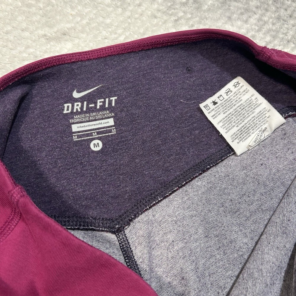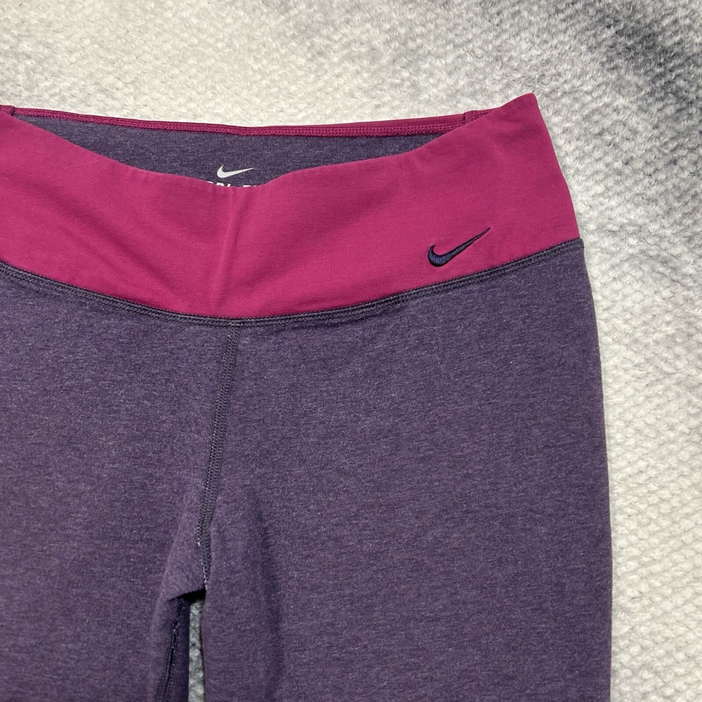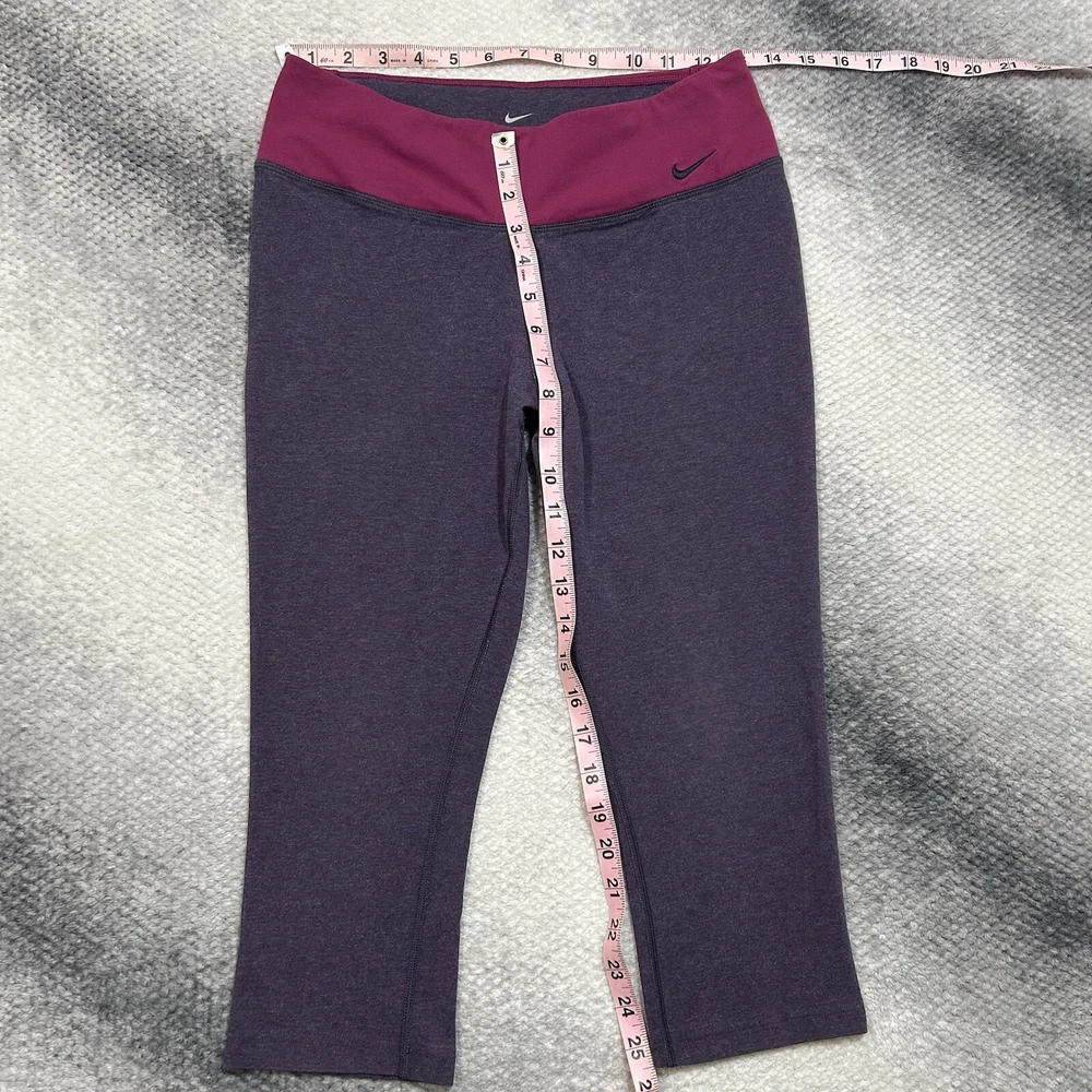 Nike legend 2.0 capri Pink and purple tight capri fit. In great condition, great stretch! 61% cotton Size: Medium See photos for measurements to ensure best fit.