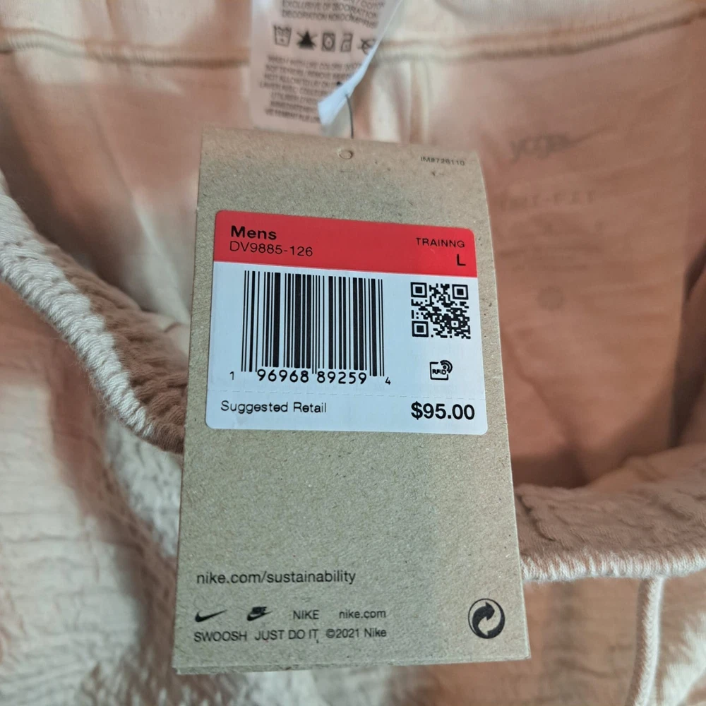 Elevate your yoga practice with the Nike Dri-Fit Flex Tapered Yoga Training Pants in a versatile beige. Designed for men, these size large pants combine function and comfort, featuring breathable fabric that helps keep you cool and stretchy material that accommodates your full range of motion. The drawstring closure ensures a secure fit while the tapered leg style offers a sleek look that doesn't sacrifice performance. With features like three convenient pockets for your essentials and a durable blend of cotton and polyester, these pants are not just for yoga but also versatile for other activewear occasions. The Nike Yoga product line emphasizes a sporty yet casual theme, making these joggers a great addition to your athletic wardrobe. The inseam length is detailed in the pictures for a perfect fit. Items are carefully inspected and sealed after photos. We carefully pack and ship out fast! We ship daily with one day handling.