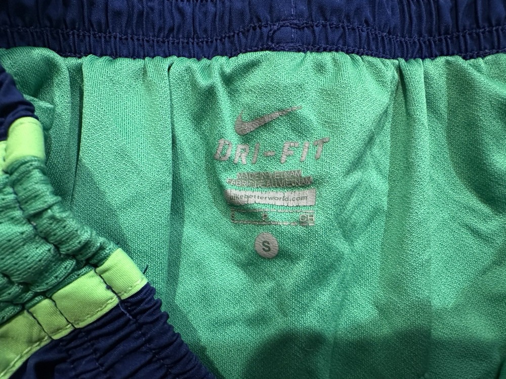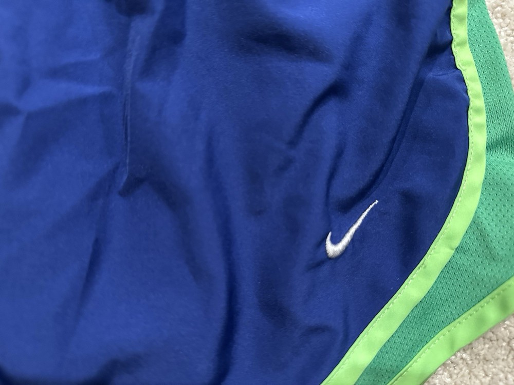 The product is a pair of Nike Dri-Fit women's athletic shorts in size small. These blue shorts are designed for active occasions and feature the signature Nike brand. With a regular size fit and athletic style, these shorts provide both comfort and performance for women looking for quality activewear.