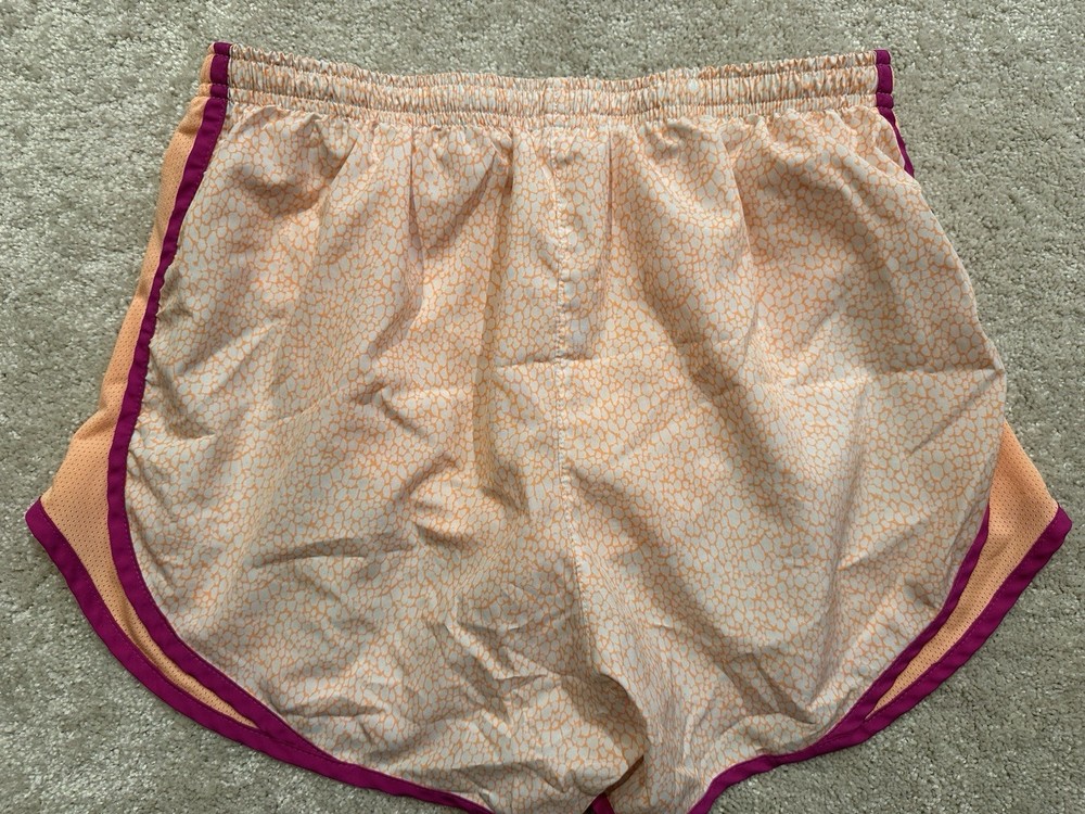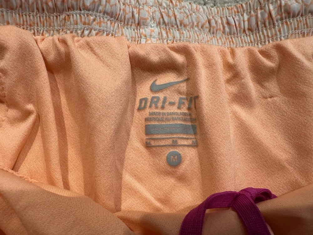 The Nike Dri Fit Women's Orange Athletic Shorts in size medium are designed for active women seeking comfortable and stylish activewear. Made by the popular brand Nike, these shorts are perfect for workouts or athletic activities. The vibrant orange color adds a pop of color to your fitness wardrobe, while the athletic style offers both functionality and a trendy look. With a regular size fit and quality construction, these shorts are a great addition to any woman's activewear collection.