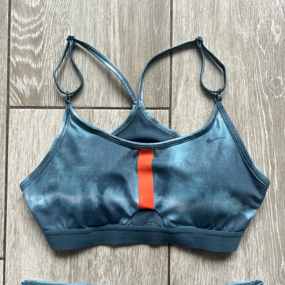 Nike women’s athletic set Bra top with removable padding High waist Shorts Both in size medium Unique and sporty set! Preowned in great condition, refer to all photos