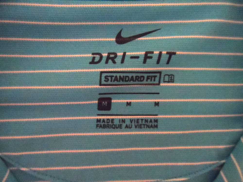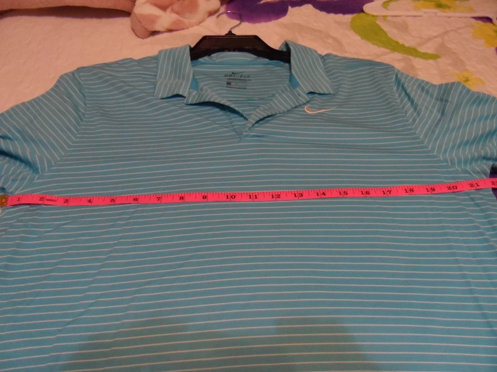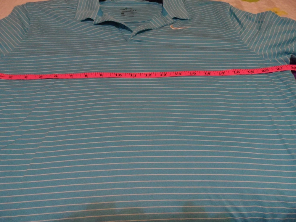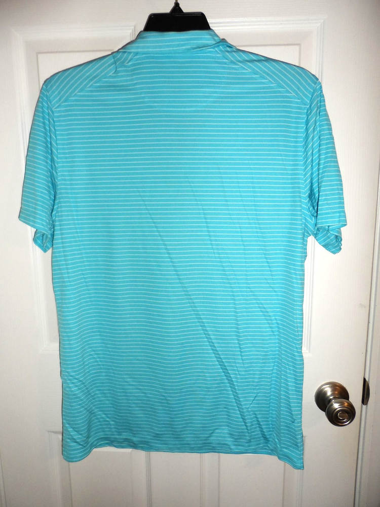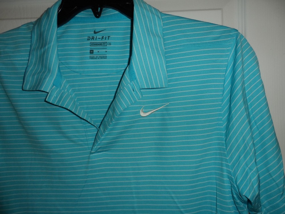 The Nike Dri-FIT Men's Golf Performance Polo Shirt in Turquoise with White Stripe is a stylish and functional piece perfect for golf or casual wear. Made of polyester with a medium fabric wash, this polo features a collared neckline, button closure, and short sleeves for breathability. The Dri-FIT technology ensures moisture-wicking performance, making it ideal for active occasions in the spring or summer seasons. With a regular fit and stretch features, this Polo Shirt offers comfort and flexibility for a range of activities.
