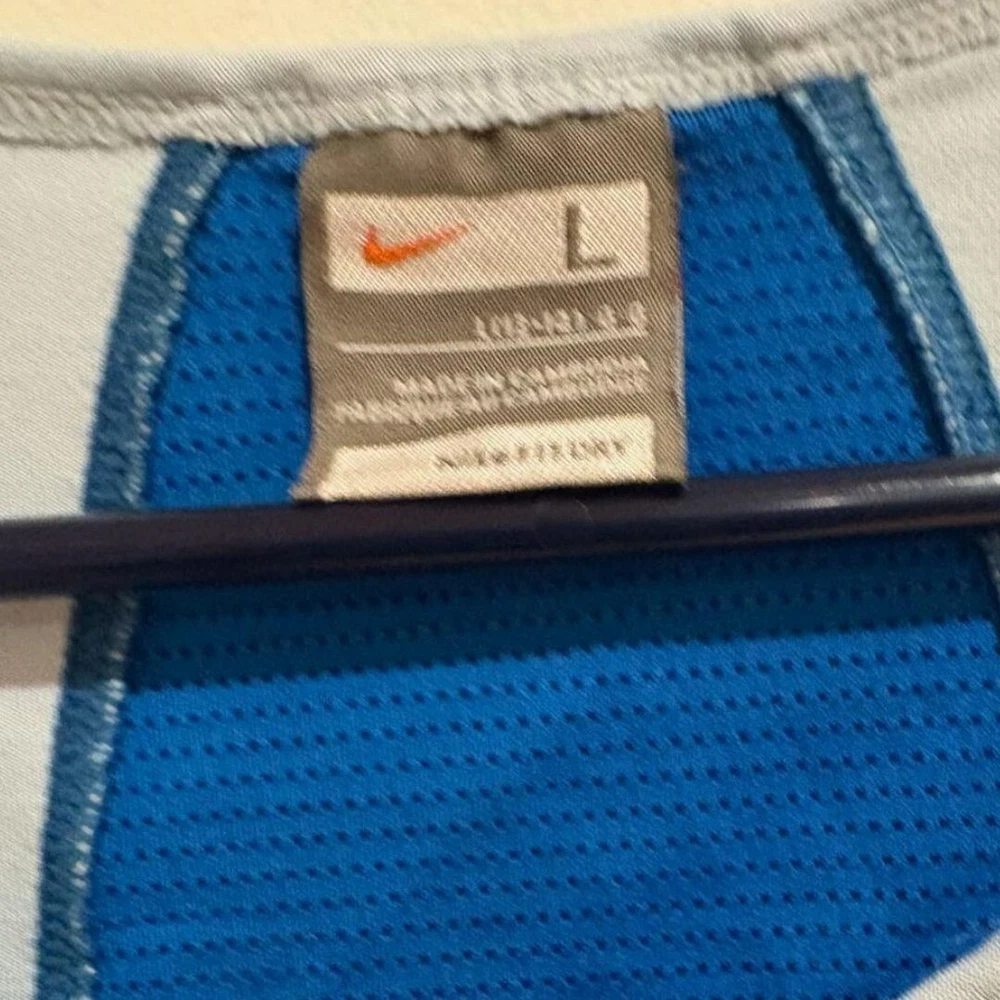 Stay cool, dry, and stylish during your workouts with the Nike Dri-FIT Performance Tank Top in a sleek blue and gray design. Designed for ultimate comfort and performance, this tank top features Nike's signature Dri-FIT technology to wick away sweat, keeping you comfortable and focused during any activity. Perfect for gym sessions, running, yoga, or casual wear, this tank is a versatile addition to your activewear collection. Key Features: Dri-FIT Technology: Keeps you cool and dry by wicking away moisture. Athletic Fit: Streamlined design for unrestricted movement. Versatile Styling: Ideal for high-performance workouts or casual outings. Durable Fabric: Made from a lightweight, breathable material for long-lasting wear. Stylish Color Combo: Blue and gray tones that pair easily with any workout gear. Specifications: Brand: Nike Color: Blue & Gray Material: Dri-FIT moisture-wicking fabric Size: L (Large) Style: Sleeveless performance tank top Condition: Pre-owned in excellent condition