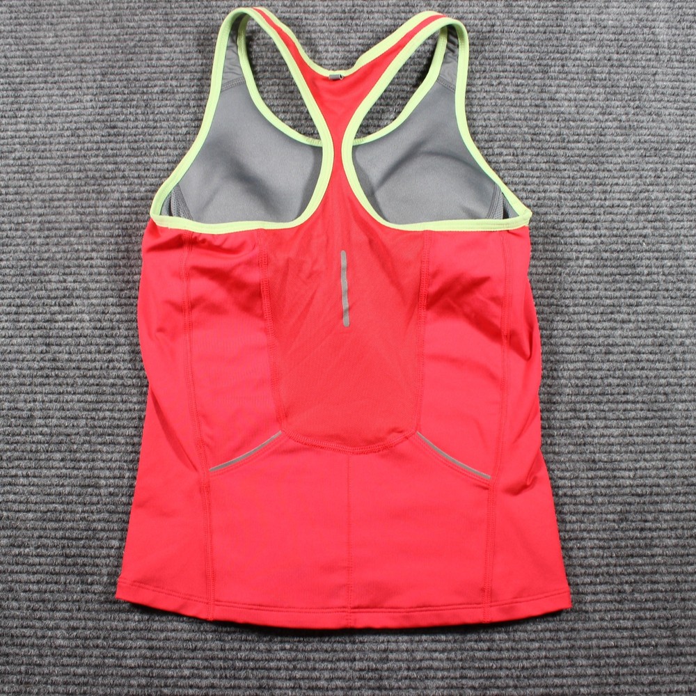 Lightweight Nike Dri-FIT racerback tank in bright coral/pink with contrast lime trim and gray lining. Moisture-wicking performance fabric is stretchy and breathable—great for running or gym sessions. Reflective hit on the back for low-light visibility. Preowned with light normal wear; no major flaws. Color may vary slightly from photos due to lighting and monitor settings. Details: Brand: Nike Style/Model: Dri-FIT racerback training/running tank Women’s Size: XS Color: Coral/pink with lime trim, gray lining Fabric: Performance stretch (Dri-FIT) Features: Moisture-wicking, racerback, reflective back detail, contrast binding Condition: Preowned; clean with typical light wear (see photos)