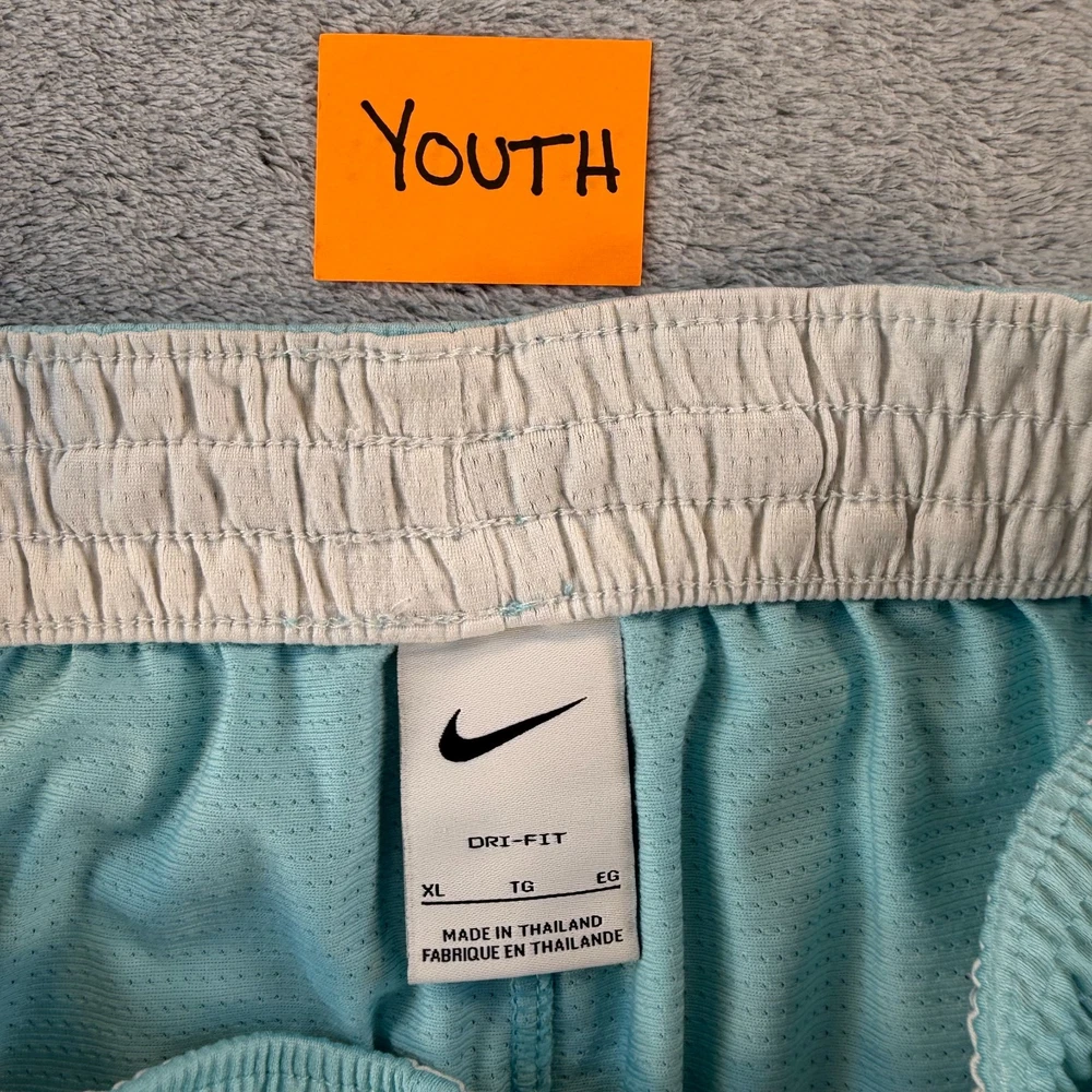 Nike Dri-FIT Athletic Shorts – Youth XL Classic Nike Dri-FIT shorts in a clean blue and white colorway. These have a naturally broken-in feel with light wash wear at the waistband— giving them that relaxed, lived-in look without sacrificing performance. Details Brand: Nike Size: Youth XL Color: Blue with White Contrast Material: Lightweight Dri-FIT Performance Fabric Waist: Elastic waistband for comfort Use: Basketball, training, gym, everyday active wear Fit & Sizing Please see included photos for measurements to ensure proper fit. Condition Notes Light visible wear/distressing on the waistband area from normal use and washing. This does not impact wearability and adds a naturally broken-in look. No major flaws affecting function. A great everyday pair with breathable performance fabric and a comfortable fit— ready for sports or casual wear. Thanks for supporting our small family business!