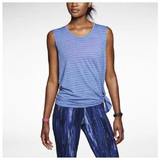 NWT * Nike Dri-FIT Touch Club Side Tie Women's Sleeveless Top Small/Medium MOVE FREELY IN A CLASSIC LOOK. The Nike Dri-FIT brings new energy to a course with loose fit and breathable fabric. Benefits Nike Dri-FIT fabric helps you stay dry and cool. Jersey fabric is lightweight and soft. Asymmetrical design puts a classic look on a modern tech shirt. Nike Swoosh logo on hem Standard fit for a relaxed, easy feel Asymmetrical hem 65% polyester 35% rayon Color: Smoke Gray New with Tag Thanks for looking! Check out my other items for more great deals!