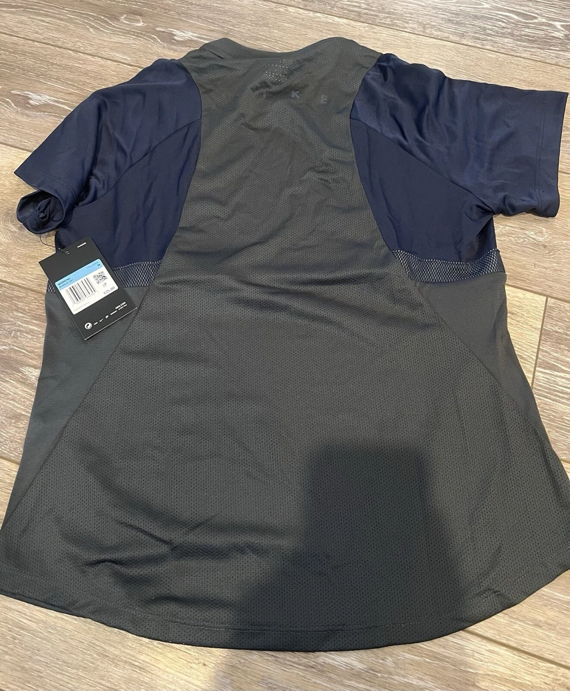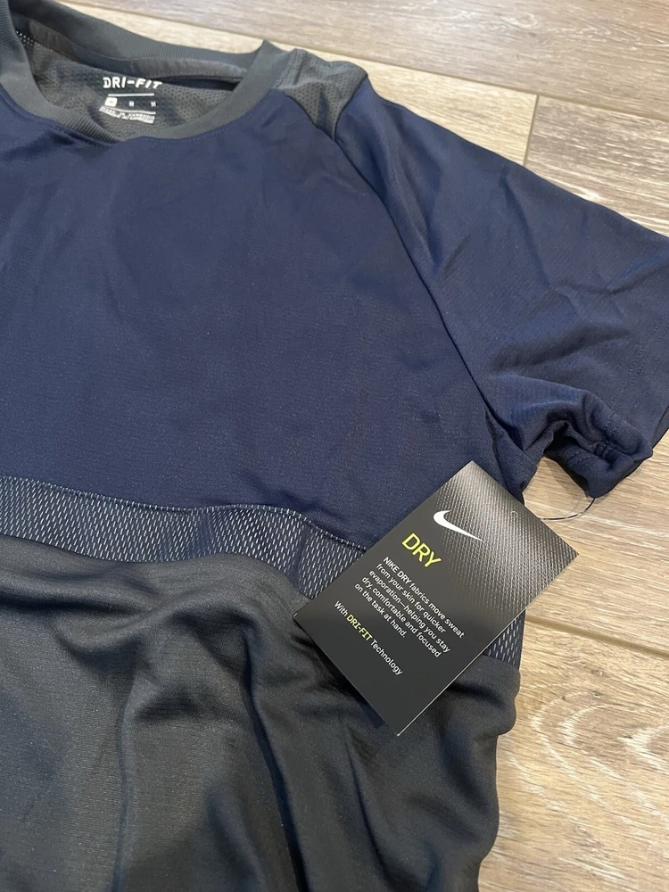 Sleeve Length:Short SleeveBrand:NikeDepartment:WomenUPC:Does not applyProduct Line:Nike ProMaterial:PolyesterOccasion:ActivewearFabric Wash:MediumPerformance/Activity:SoccerSize Type:RegularModel:Nike Dri-Fitgtin13:Does not applyColor:Blue and GreyType:Active Athletic Training Short Sleeve ShirtMPN:BV6940060Size:Medium