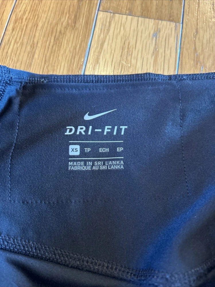 Nike DriFit Cropped Capri Workout Leggings Yoga Sport Athletic black Size XS. Inseam 19” Rise 8.5” Waist laying flat 13” No pilling, excellent condition from a smoke free home. Inventory js