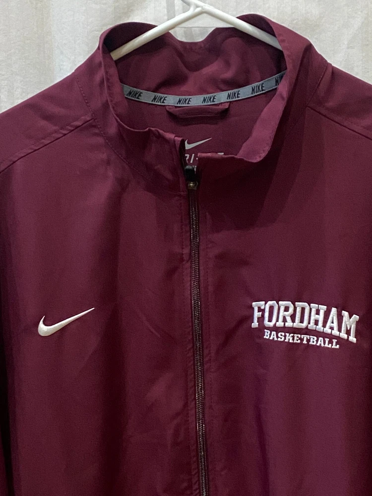 Nike Dri-Fit Fordham Rams Basketball Windbreaker Jacket Mens 2XL Maroon Full Zip Description Nike Dri-Fit Fordham Rams Basketball Windbreaker Jacket Mens 2XL Maroon Full Zip . Product Detail • Brand : Nike • Color : Maroon • Gender : Men's • Type : Jacket Please message me if you have any questions.