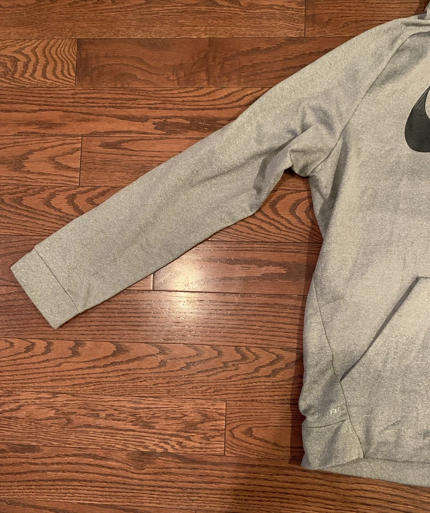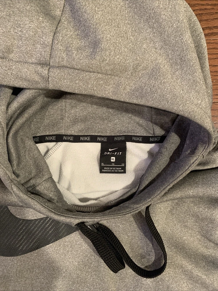 Nike Dri-Fit Graphic Logo Swoosh Gray Hoodie Size XL. Condition is Pre-owned. Shipped with USPS Media Mail.
