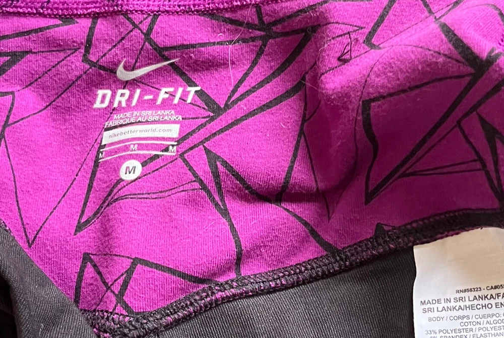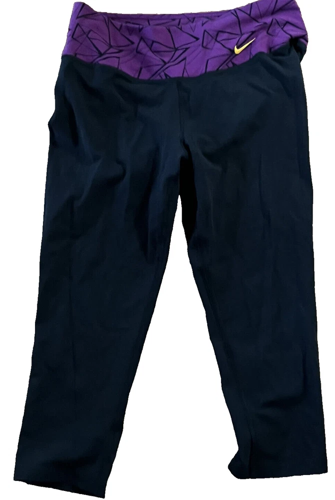 Nike Dri Fit Size Medium Black Purple Capri Logo Leggings