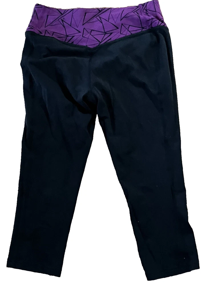 Nike Dri-Fit Pant Womens Medium Black Purple Capri Crop Legging Yoga Walking Gym