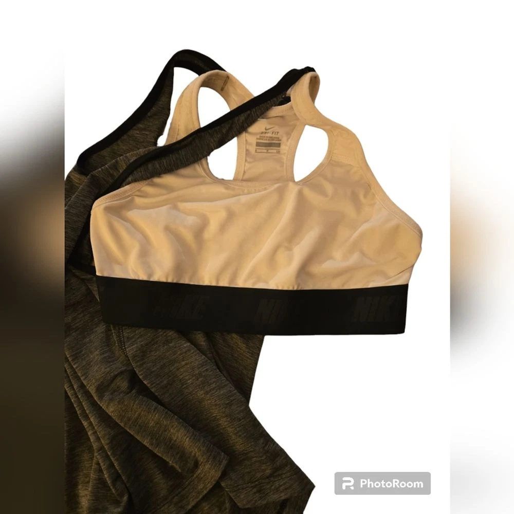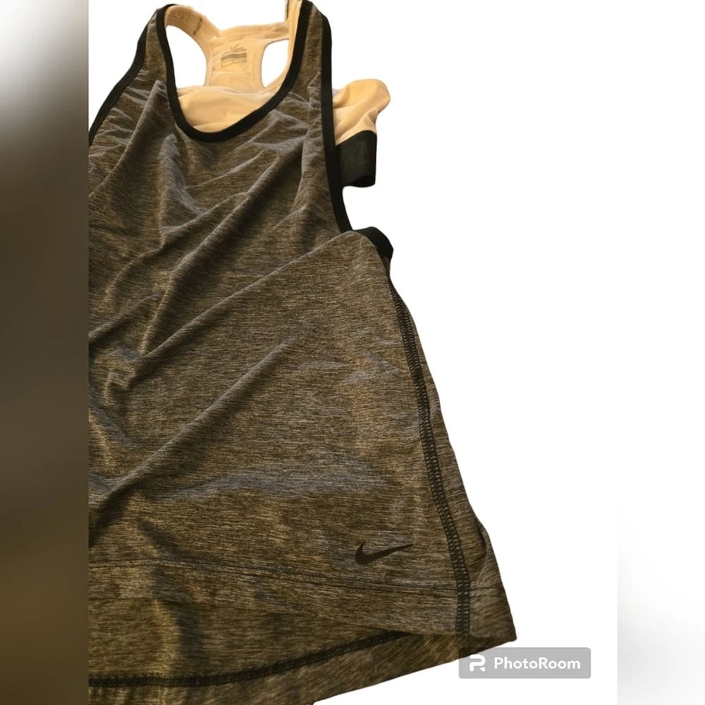 Nike Dri-Fit Racerback Tank Top with Built in Sports Bra Women's S Heather Grey Dri-Fit material wicks moisture away to keep you dry *MAKE YOUR OWN BUNDLES* I have a lot of the same size, style, and name brand items. If you look at items and see anything you like I will bundle so you can get a better price and helps with shipping! Comes from a non smoking, no bug, clean home. I only use gain detergent on laundry, and I do not wear any perfume.