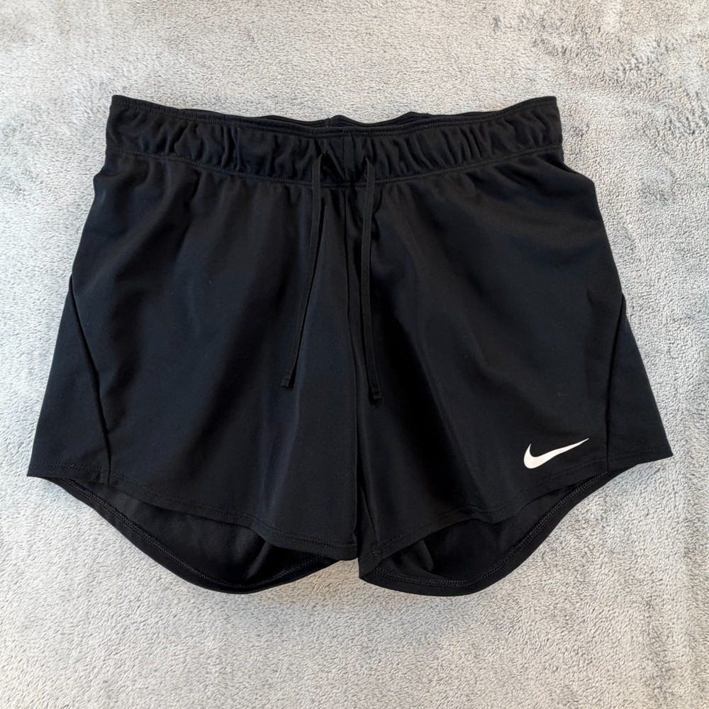 Nike Dri-Fit Running Shorts – Women’s Size Small Lightweight Nike athletic shorts designed for comfort and performance. Features moisture-wicking Dri-Fit fabric with a relaxed running fit and adjustable drawstring waist — perfect for workouts, running, training, or casual athleisure wear. Details: Brand: Nike Size: Women’s Small Color: Black Material: 100% Polyester Dri-Fit moisture-wicking fabric Elastic waistband with drawstring Curved hem for ease of movement Nike swoosh logo 📏 Measurements: See included photos for measurements. A versatile Nike staple — great for running, gym workouts, sports, or everyday comfort. 💛 Thanks for supporting our small family business!