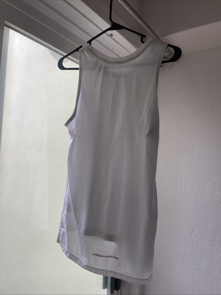NIKE Sleeveless Tank Top Tee Mens Small white Swoosh Logo Muscle Shirt Dri Fit. Condition is Pre-owned. Shipped with USPS Ground Advantage.
