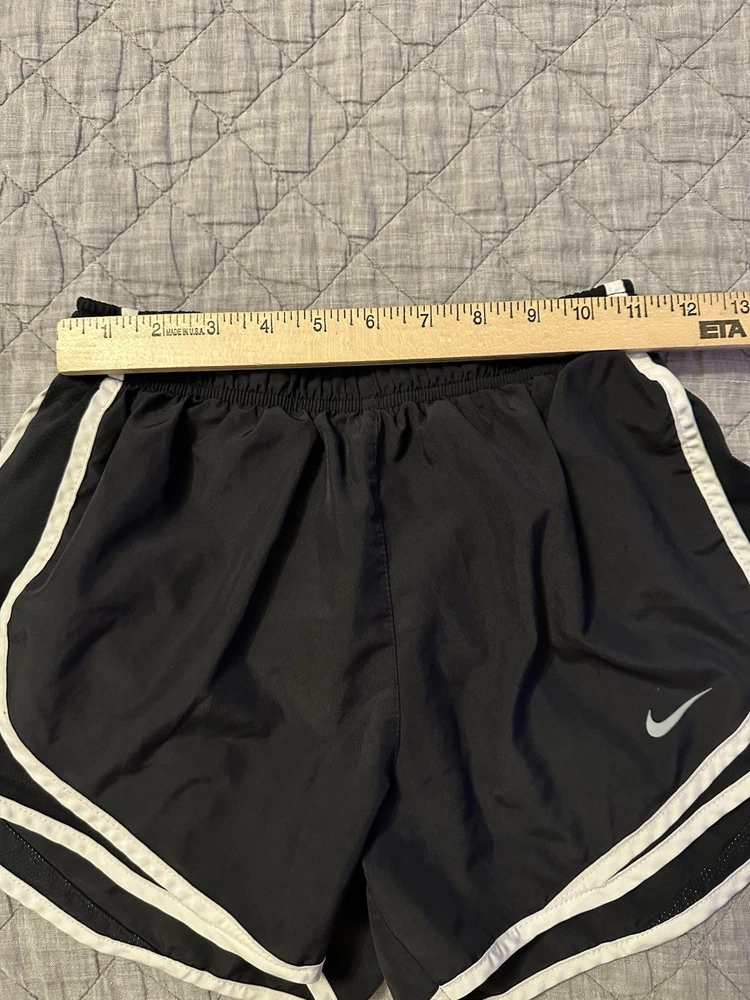 The Nike Women's Tempo Running Shorts in Black are a stylish and functional piece of activewear perfect for running, training, and other active pursuits. Made from 100% polyester, these athletic shorts feature a solid black color and a comfortable fit for women size Large. The Nike brand ensures quality and style, making these shorts a great addition to any active wardrobe.